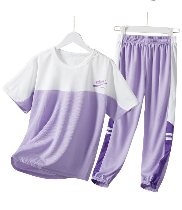 親子款涼感速乾短袖+長褲運動套裝-紫色
