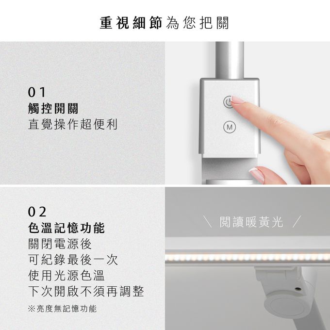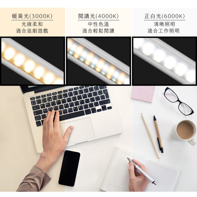 3000K/4000K/6000K三檔色溫,可記憶色溫