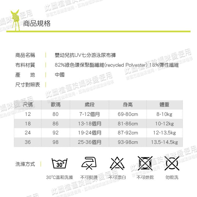 品名:嬰幼兒抗UV七分游泳尿布褲