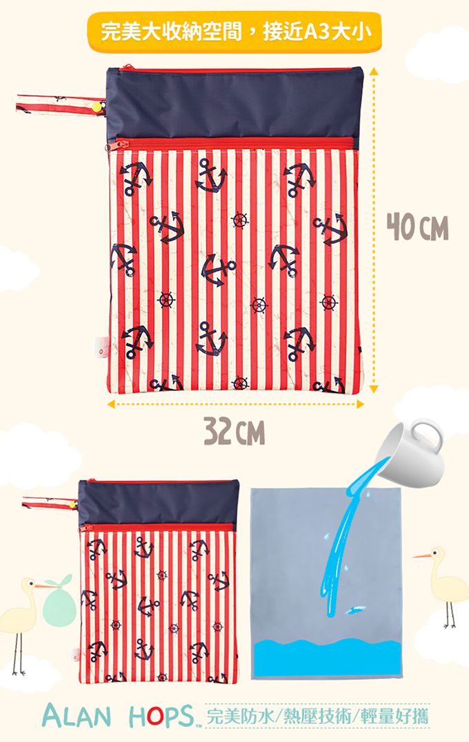 。完美大收納空間,尺寸為 32 x 40公分, 接近A3大小, 並分為主袋與副袋.