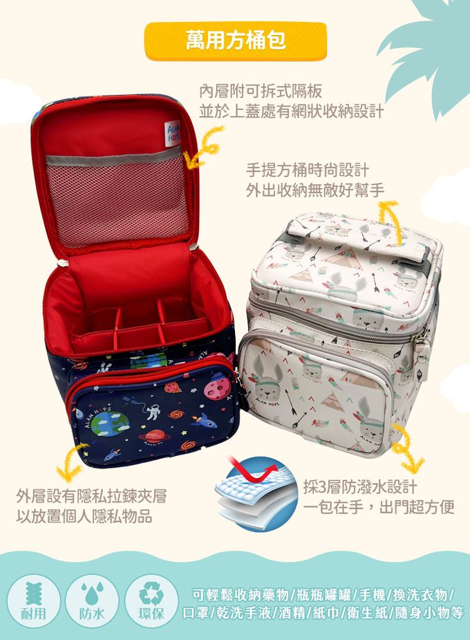 。可輕鬆收納兒童藥物/瓶瓶罐罐/手機/換洗衣物/口罩/乾洗手液/酒精/紙巾/衛生紙/隨身小物等