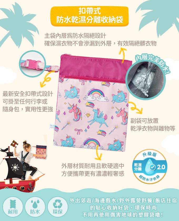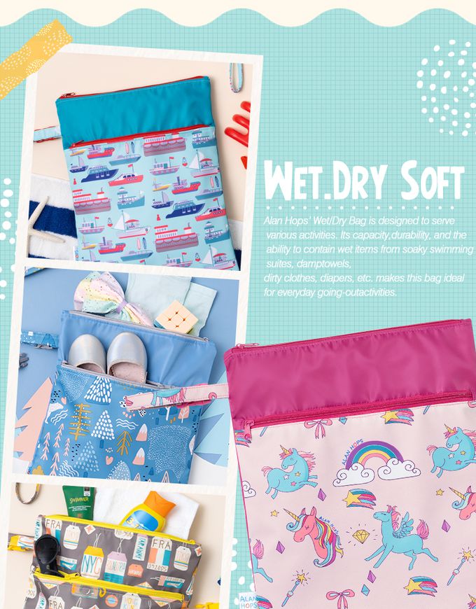 玩水游泳一定會帶著濕透的衣服或泳衣回家,因此有個好用的防水袋就非常重要了~以前編媽都會隨便拿個塑膠袋裝,有時運氣不好或沒注意,拿到有破洞的整個包包就濕掉(〒︿〒) 這一次找到了【泰國設計師款 Alan hops 防水袋】有著在外面不會撞款的獨家花色,每款都非常可愛,並且內層是100%防水,可以安心的裝濕泳衣唷~看看這些花色是不是繽紛又可愛!編媽第一眼就是被外表魅惑,別說是給小朋友,媽媽自己都好想要啊~