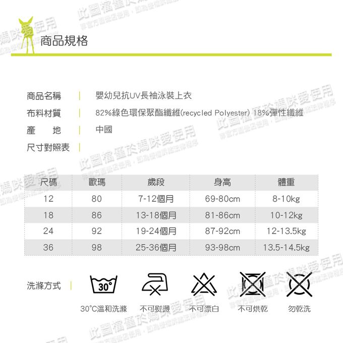 品名:嬰幼兒抗UV長袖泳裝上衣