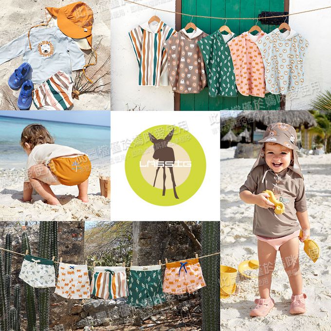 德國 Lassig - 嬰幼兒抗UV長袖泳裝上衣-小米白