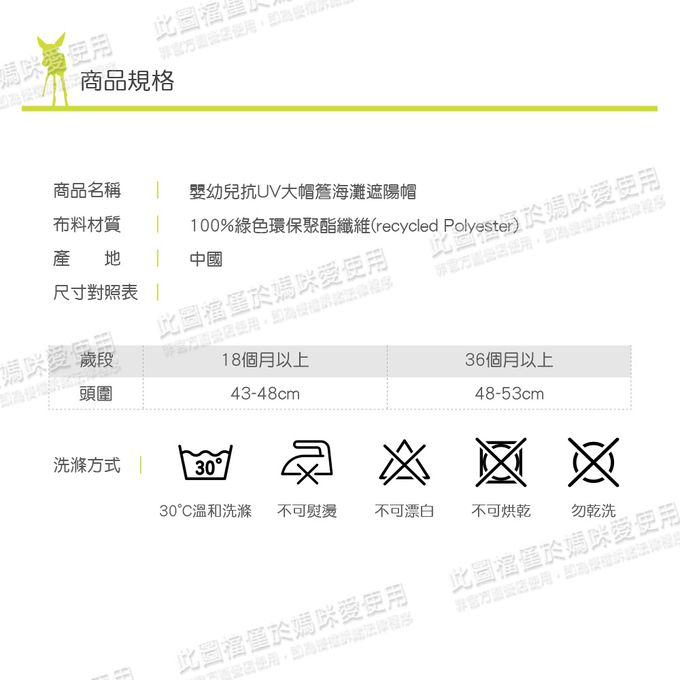 品名:嬰幼兒抗UV大帽簷海灘遮陽帽