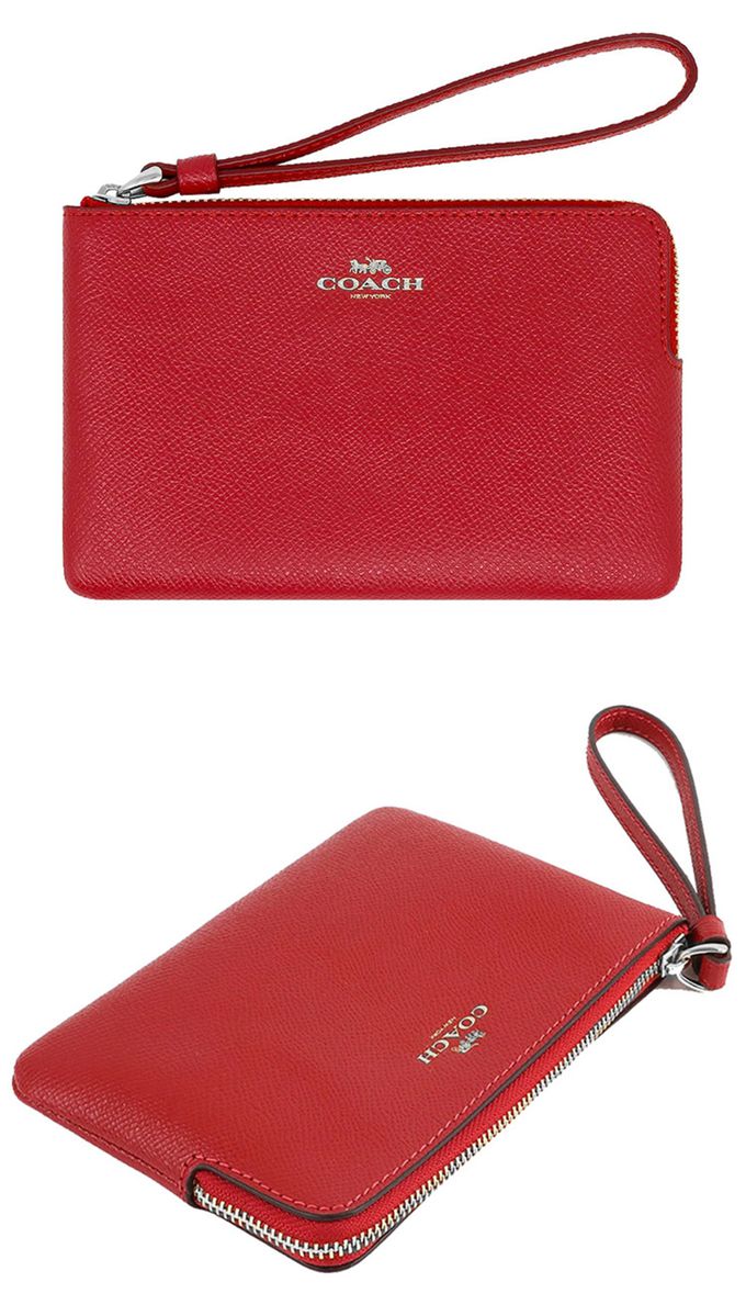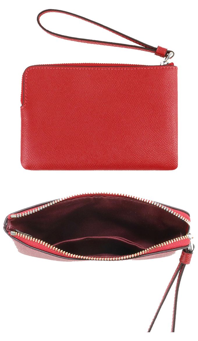素面皮革L型拉鍊手拿包 (紅)
