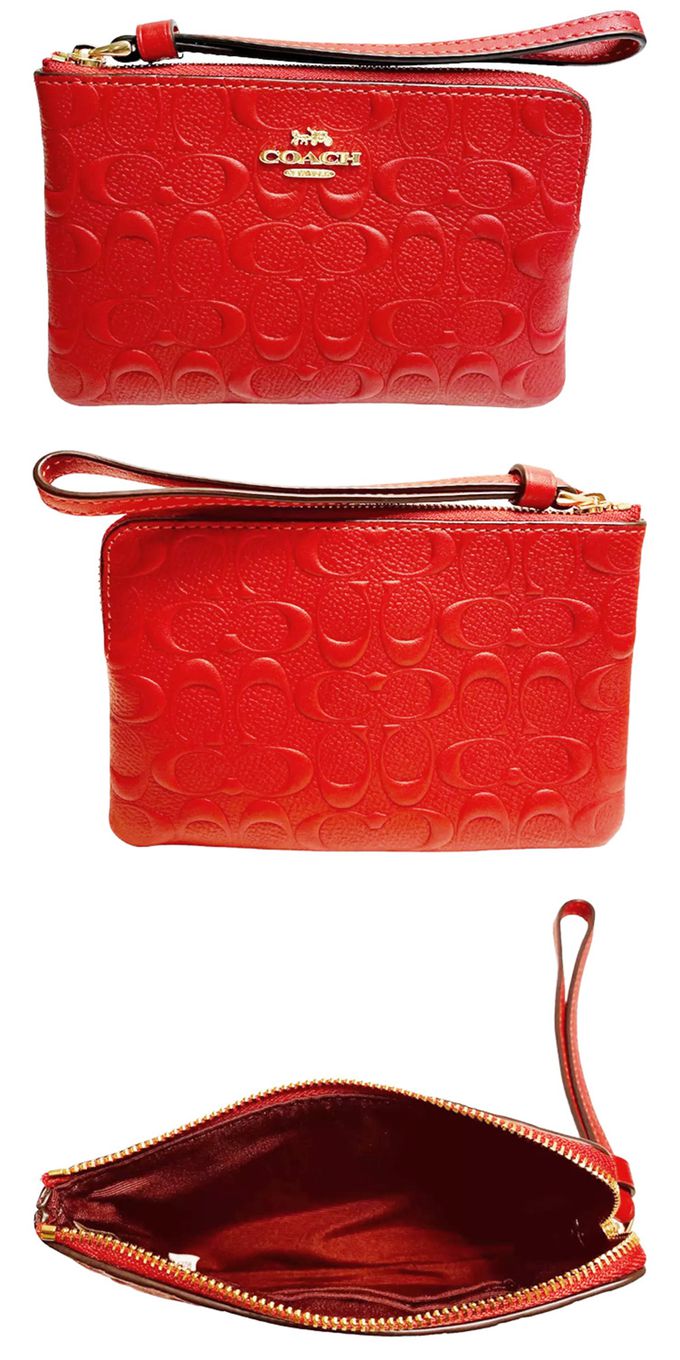 浮雕皮革L型拉鍊零錢手拿包 (紅)