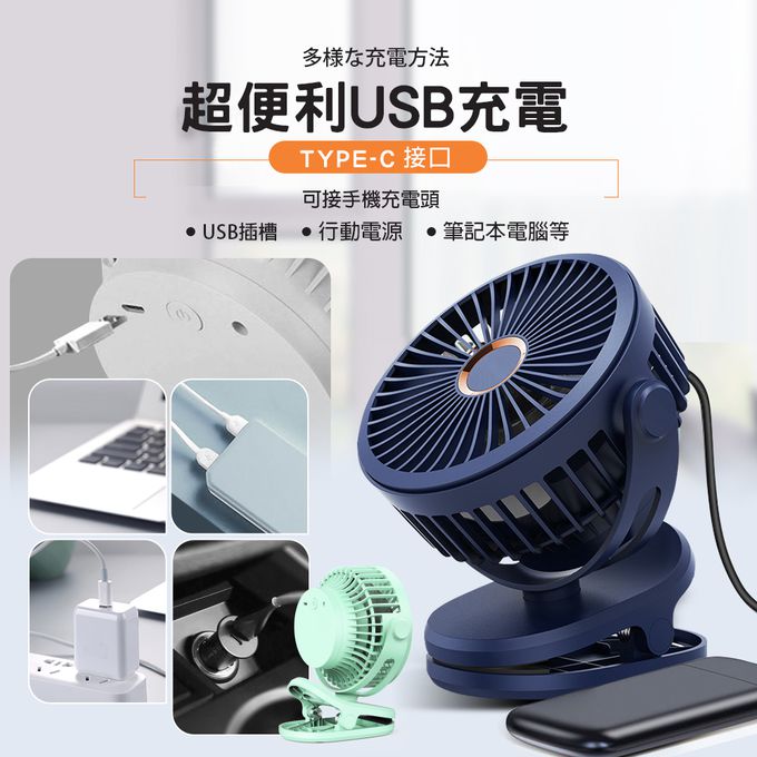 包裝配件:夾子風扇*1、USB To Type-C充電線*1、說明書*1