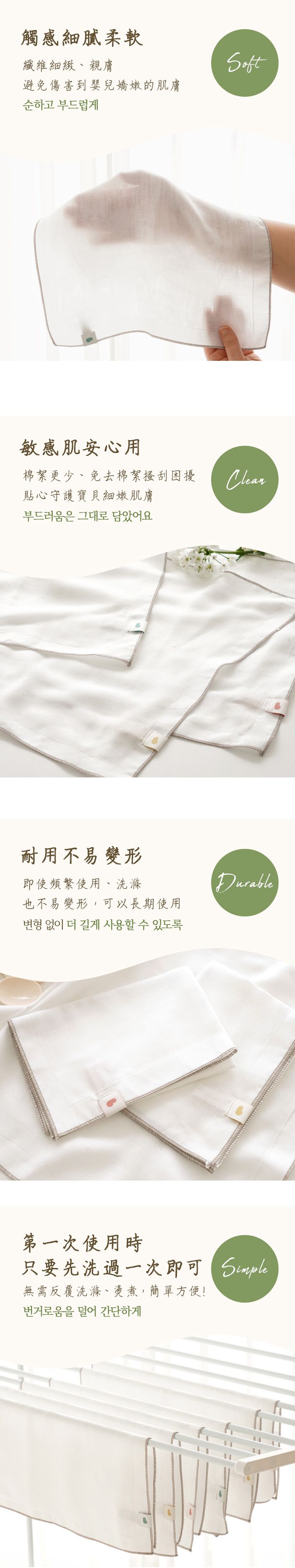 媽媽們每天都要幫小寶貝擦嘴、擦身體,這時候手帕絕對是必備的重要物品!所以編媽今天特地帶來一個新品牌Bamboo Bebe。他們家的手帕是由70%竹纖維和30%棉製成,觸感則是堪比絲綢、柔軟透氣,內含與莫代爾、天絲相似的高級纖維。從布料到縫紉皆在韓國生產!