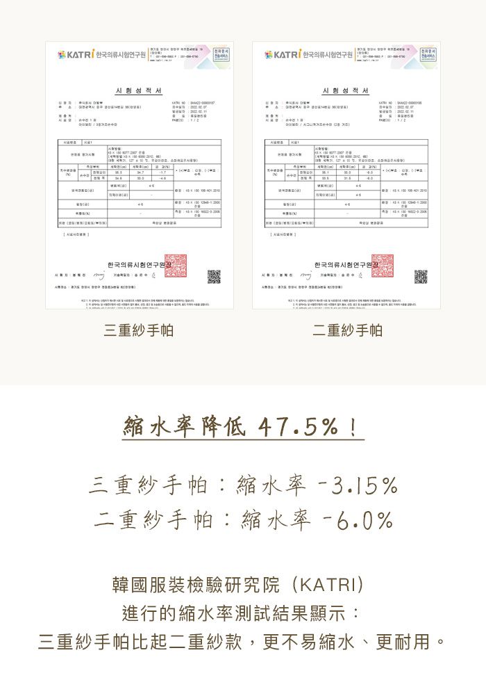 由下圖測試可看出吸水性的比較:因三重紗手帕相較二重紗手帕多一層紗布的關係,吸水性略勝一些~