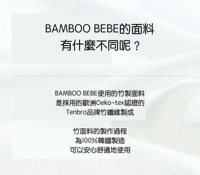 竹纖維細小的氣孔擁有出色的透氣和吸濕能力,因此Bamboo Bebe的紗巾、手帕使用起來更加舒適~他們家還是韓國唯一通過歐洲Oeko-Tex認證的品牌哦!且產品通過有害物質測試:無添加螢光劑、農藥及化學肥料,不會刺激寶貝嬌嫩的肌膚~!