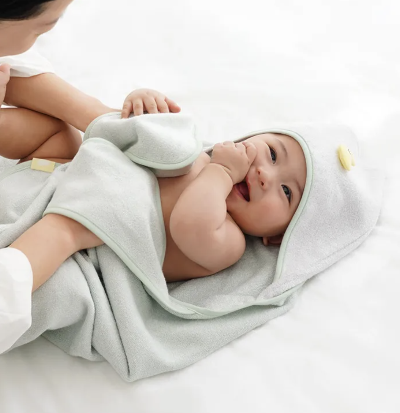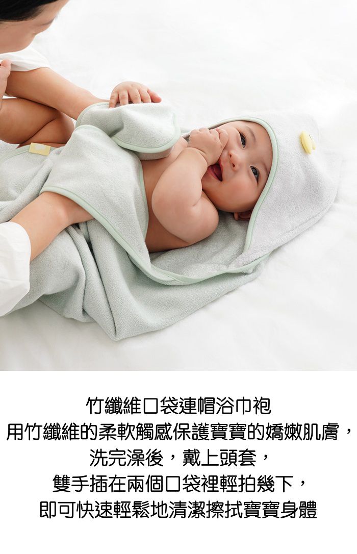 Bamboo-bebe家的浴巾袍實在是太可愛了🥹在幫寶寶洗完澡後,穿上它戴上頭套,雙手插在兩個口袋裡輕拍幾下,就可以輕鬆快速的將寶寶身體擦拭完成!實在是節省洗澡時間的福音啊!