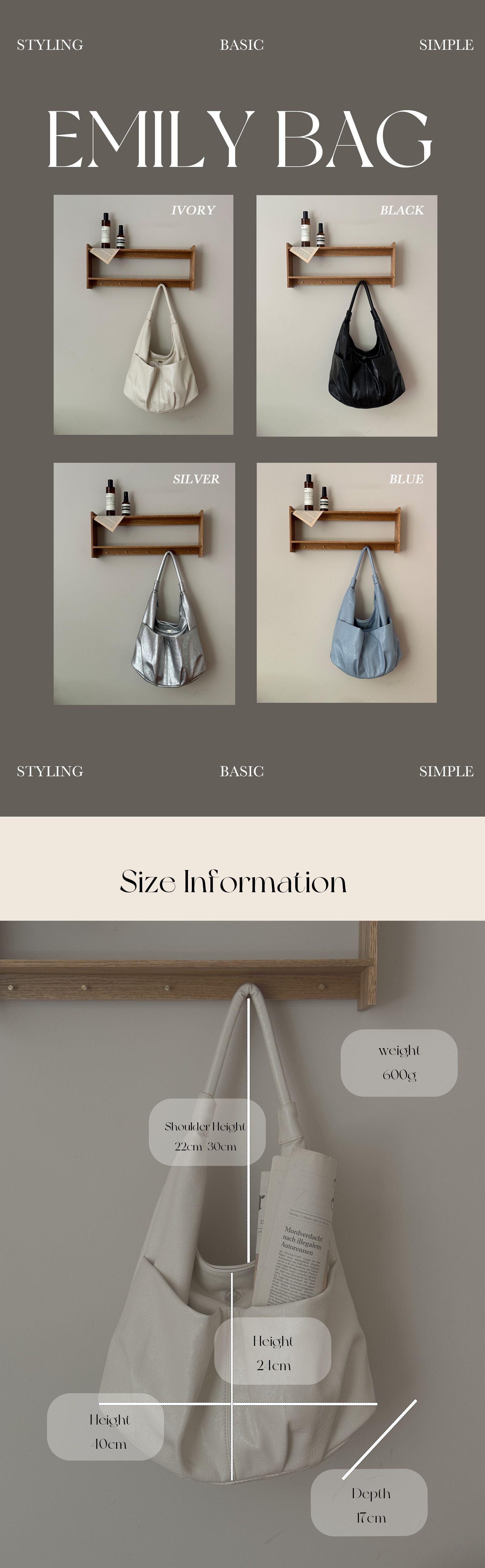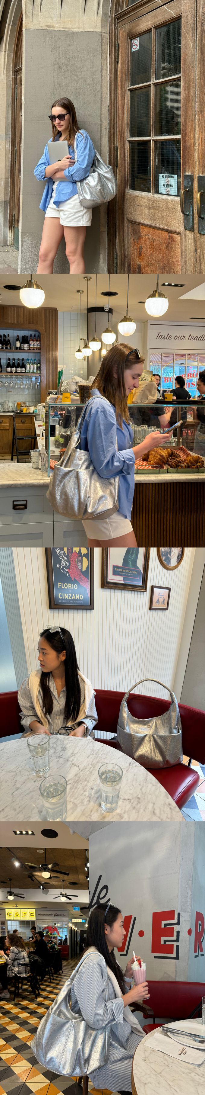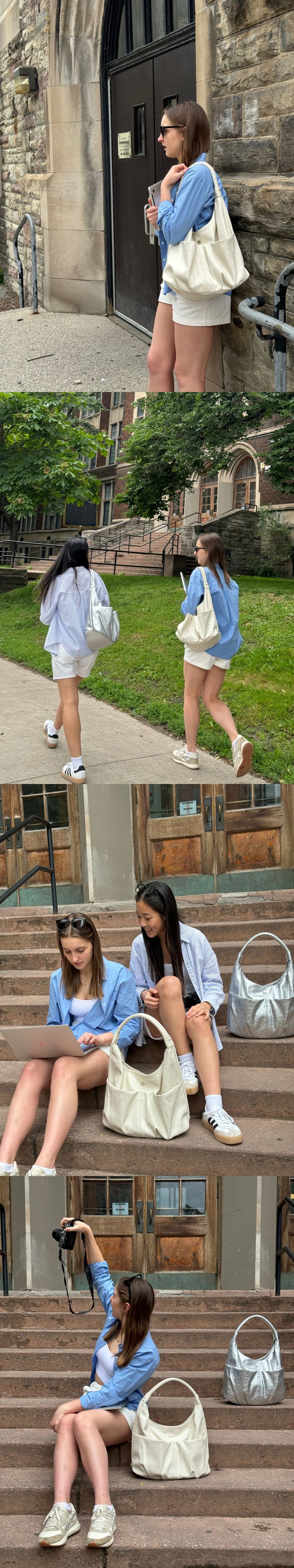 韓國 THEALLY - 小眾設計 大容量光澤皮革口袋肩背包-米白