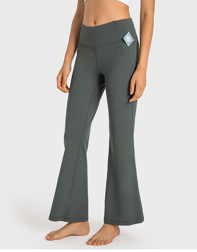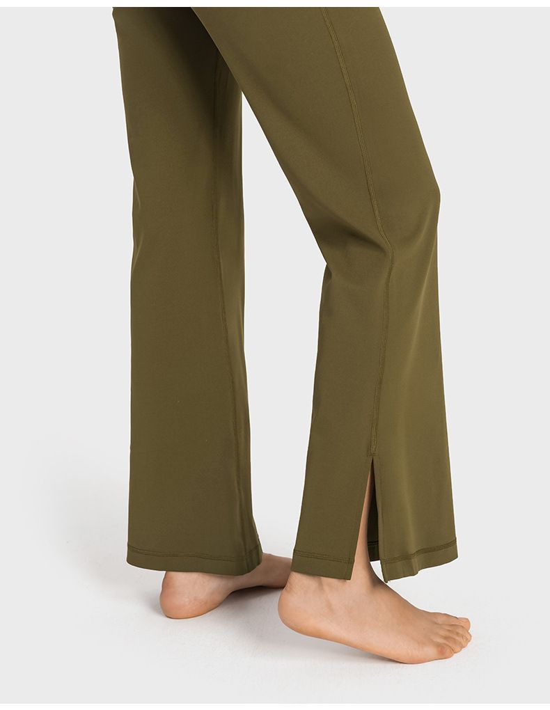 超彈收腹顯瘦側開岔喇叭瑜珈褲-灰綠色