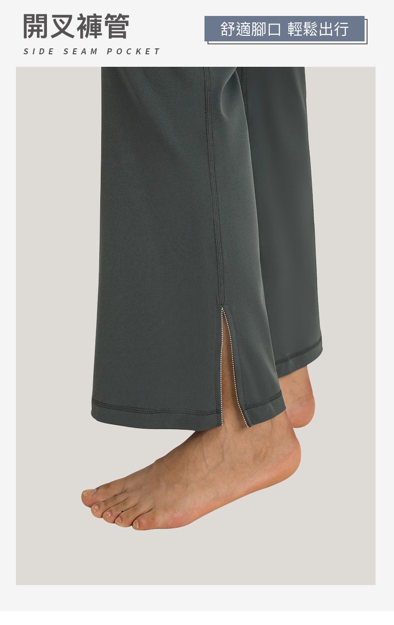高腰收腹X開叉褲管,修身顯瘦版型