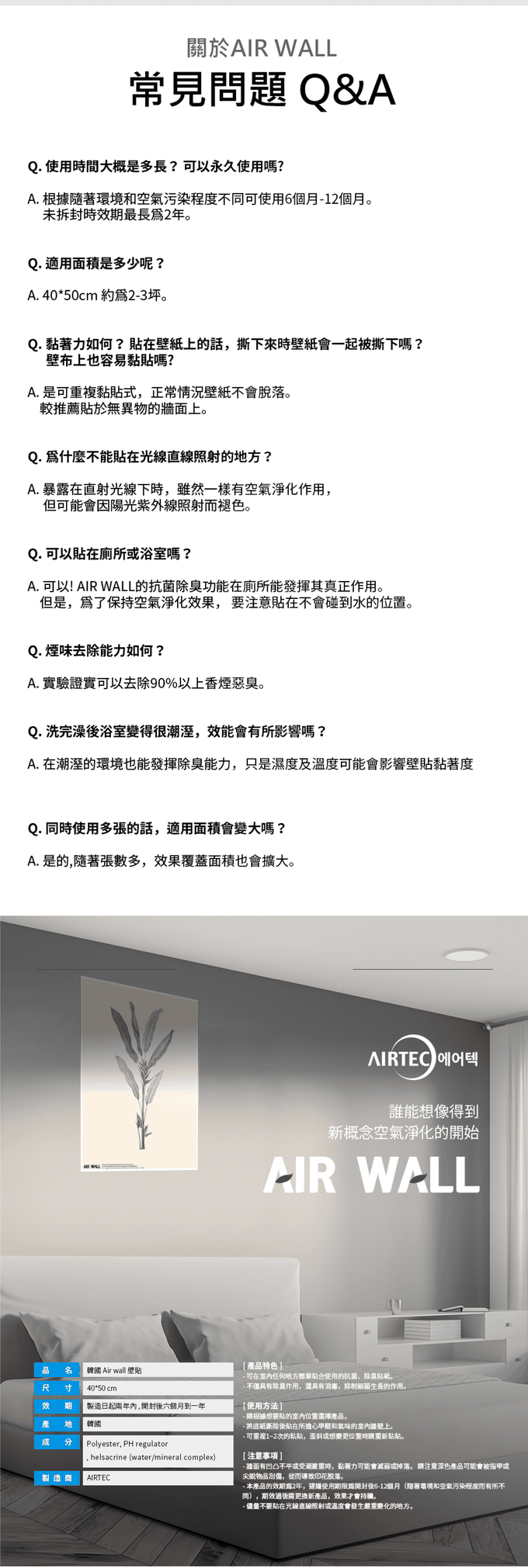 品名:Air Wall Air Fresh 抑菌除臭壁貼