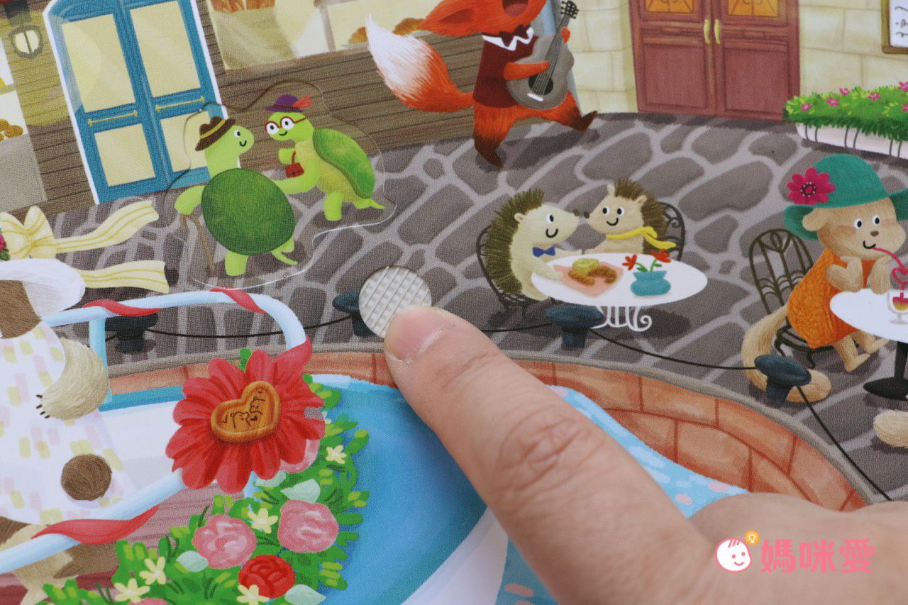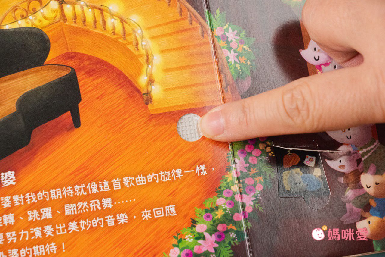孩子還小的時候,正值好奇心旺盛時期,所以有一類的書籍我非常喜歡添購,就是有按鈕的音效書,因為能讓孩子對書有興趣,願意去跟書互動!像這本書妹妹就特別喜歡,無論是音樂或故事,放學回家每天都要聽一下、翻一下才願意去睡覺。