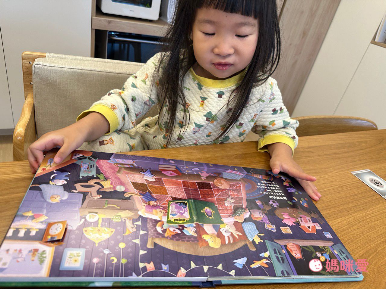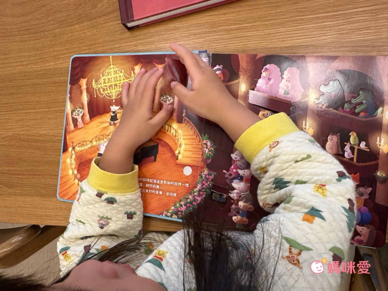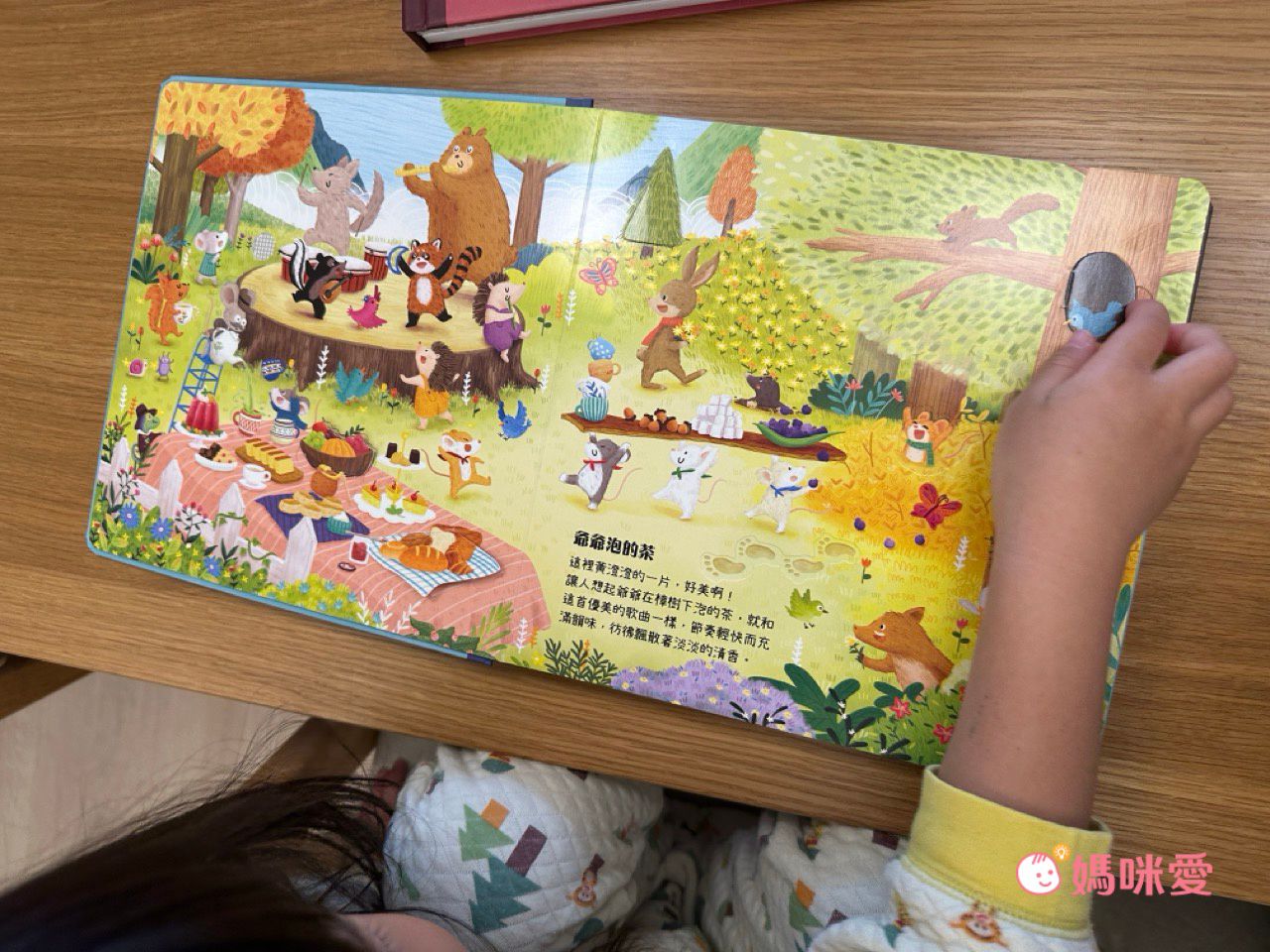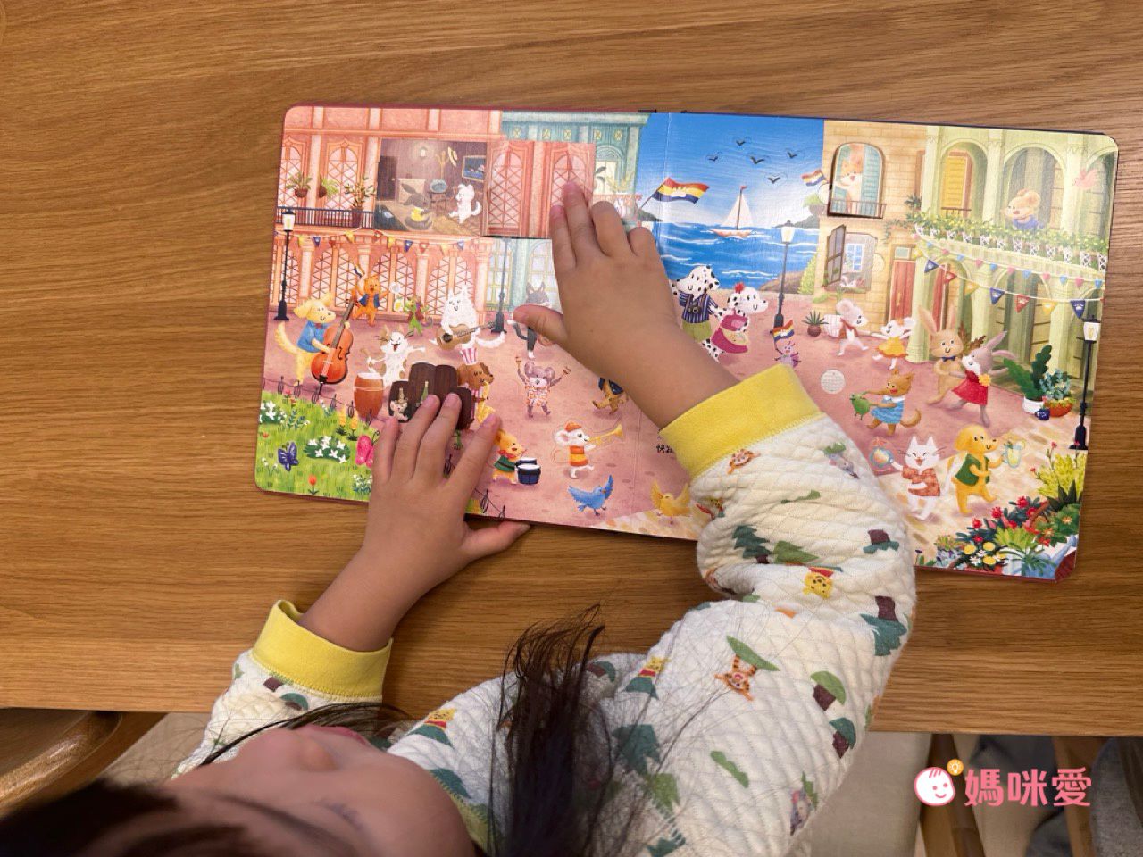 妹妹會邊聽音樂邊翻動書本裡的小機關,時不時會告訴媽媽自己發現到了什麼動物、動物們正在做什麼
