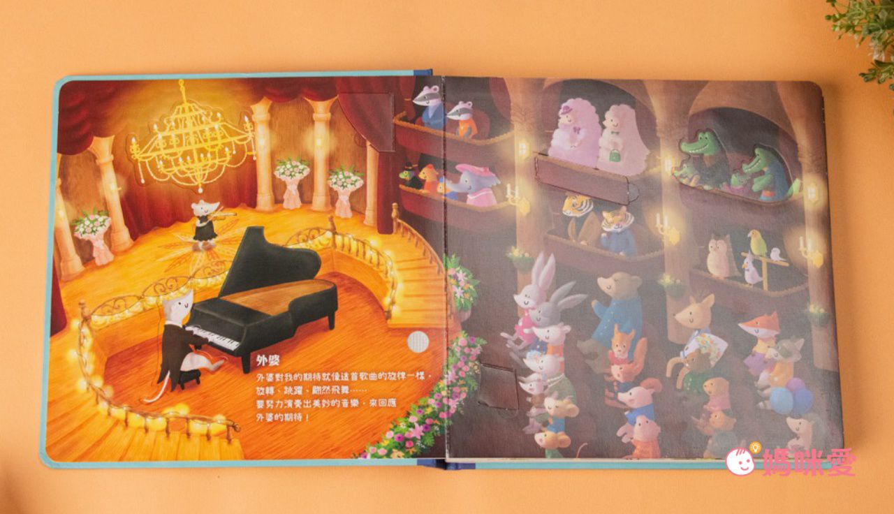 不得不說插畫精緻除了孩子喜歡,媽媽也愛!細緻筆觸+柔和顏色,畫出一隻隻可愛動物與各種場景,像音樂廳、城堡、森林等,風格溫暖又童趣,可提升孩子的美學素養。