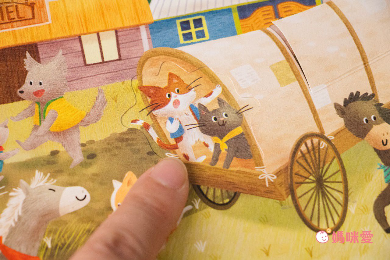 也許會翻到動物們在舉辦婚禮、搭乘摩天輪和旋轉木馬、坐上熱氣球⋯等,增加孩子閱讀時的互動性與趣味性~