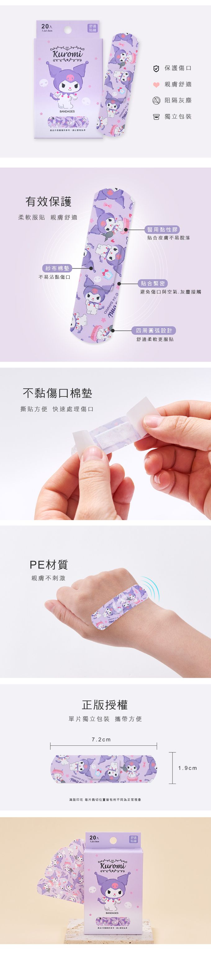 可愛卡通OK繃-酷洛米貼繃 (7.2cm X 1.9cm X 20枚)