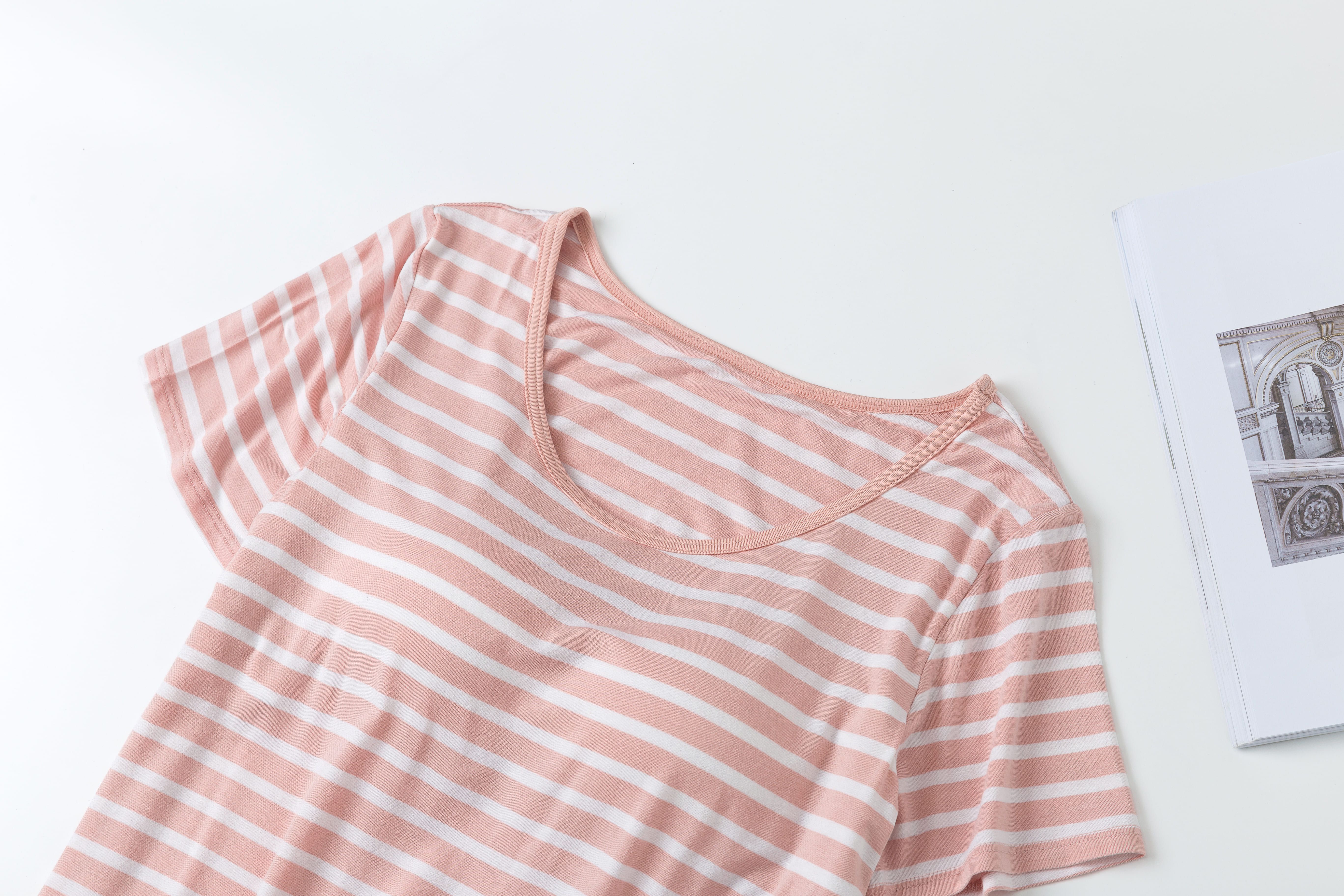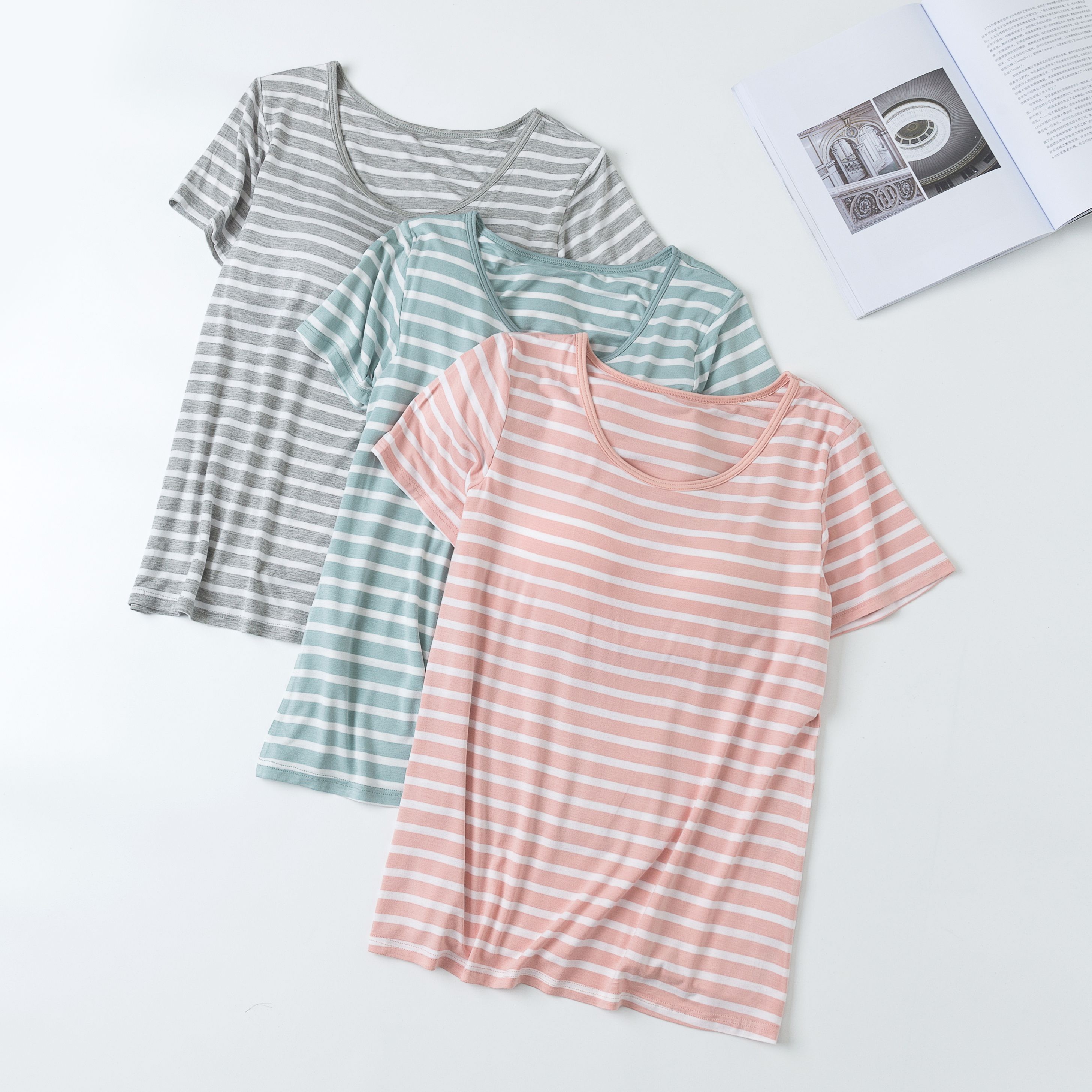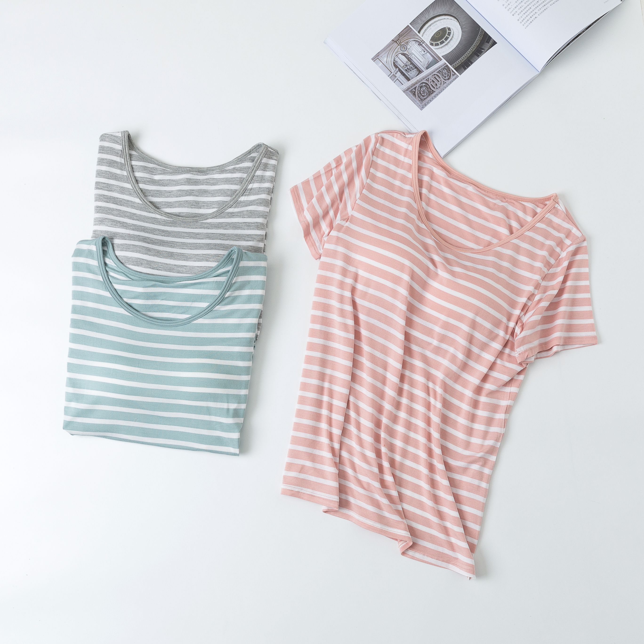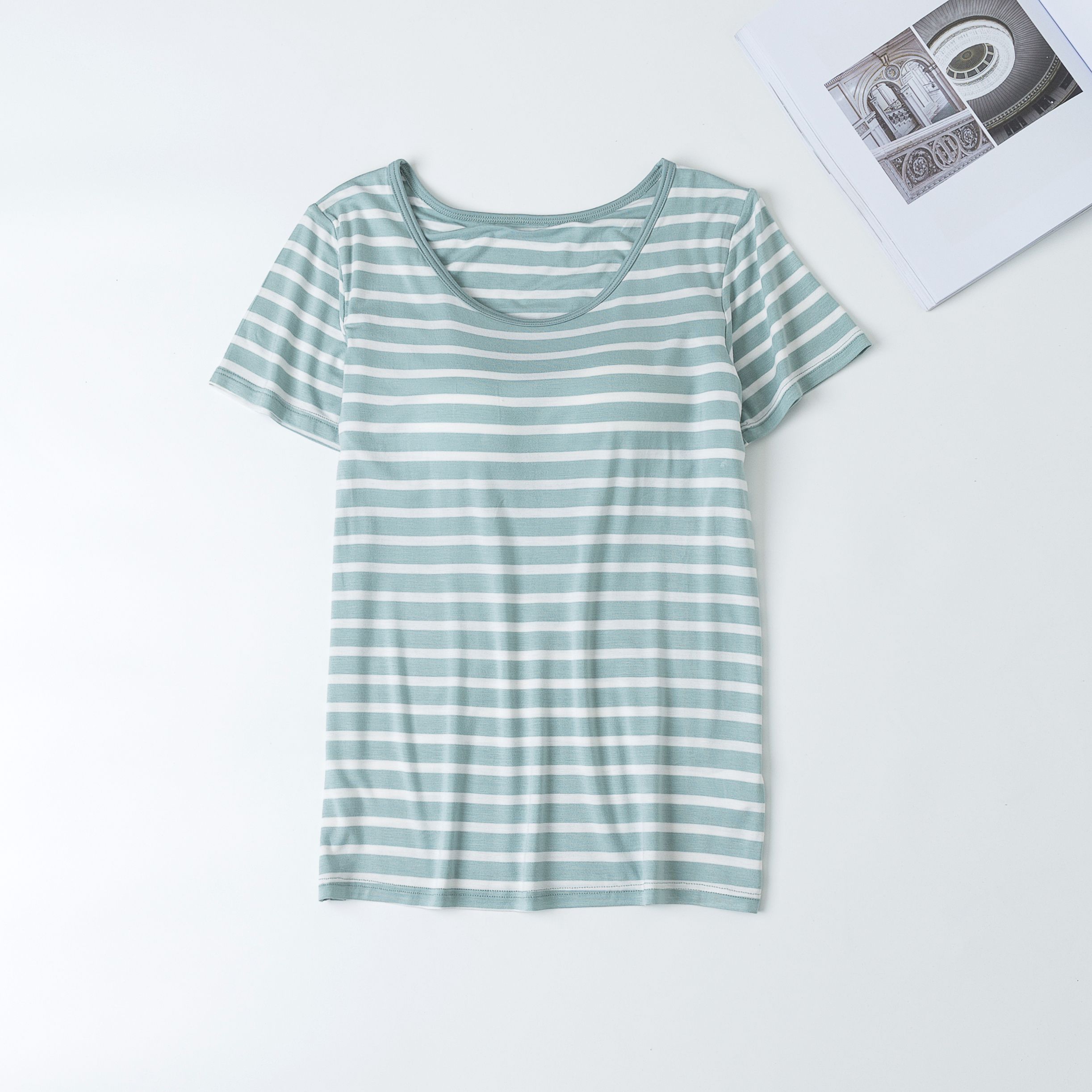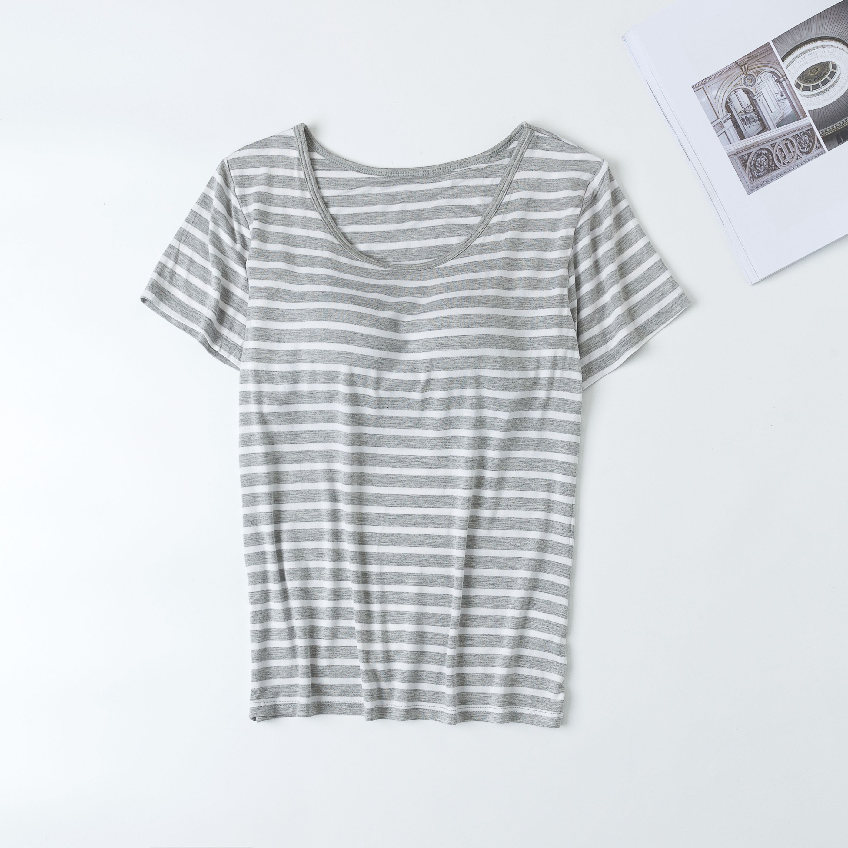 莫代爾柔軟涼感短袖Bra T-灰白條紋