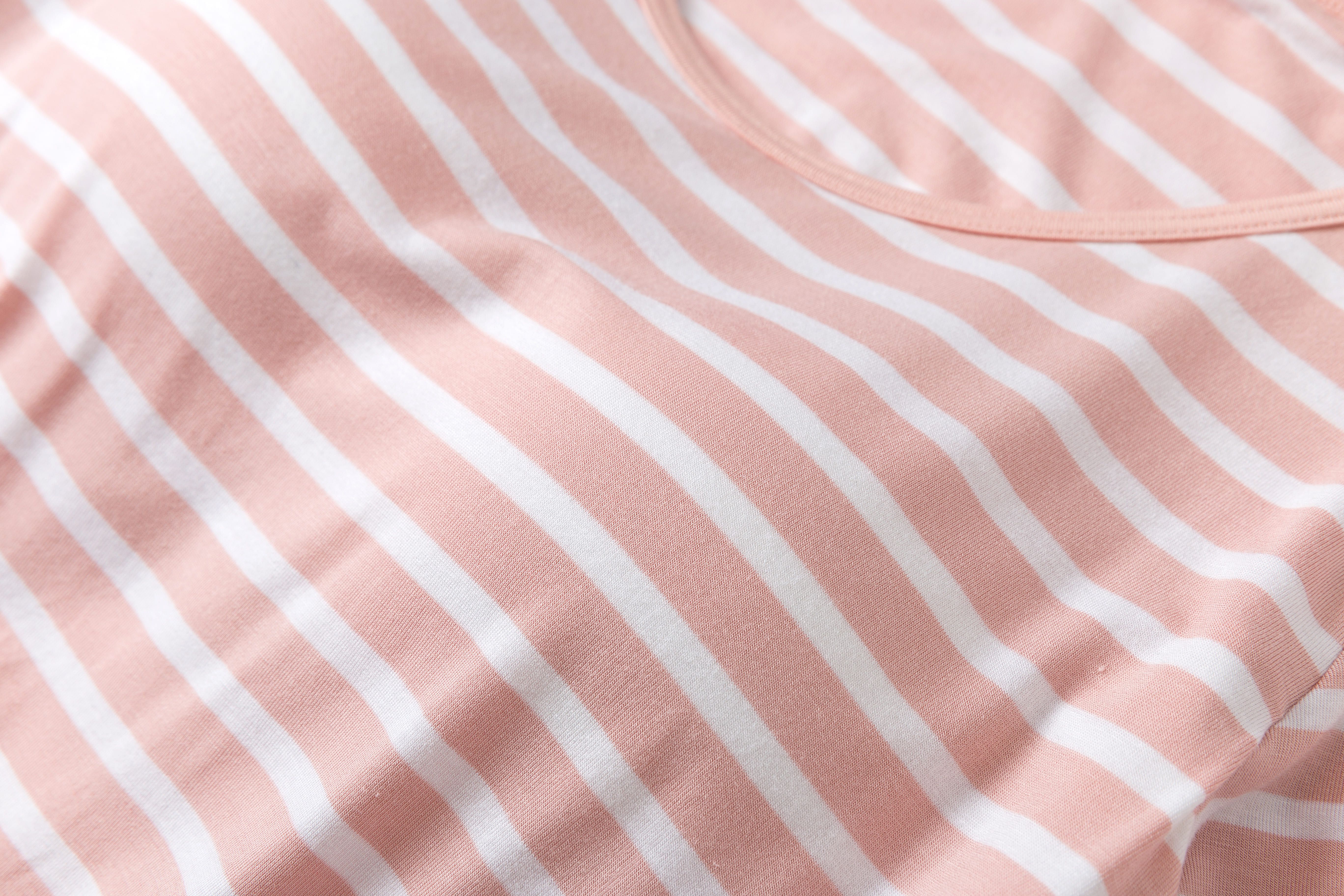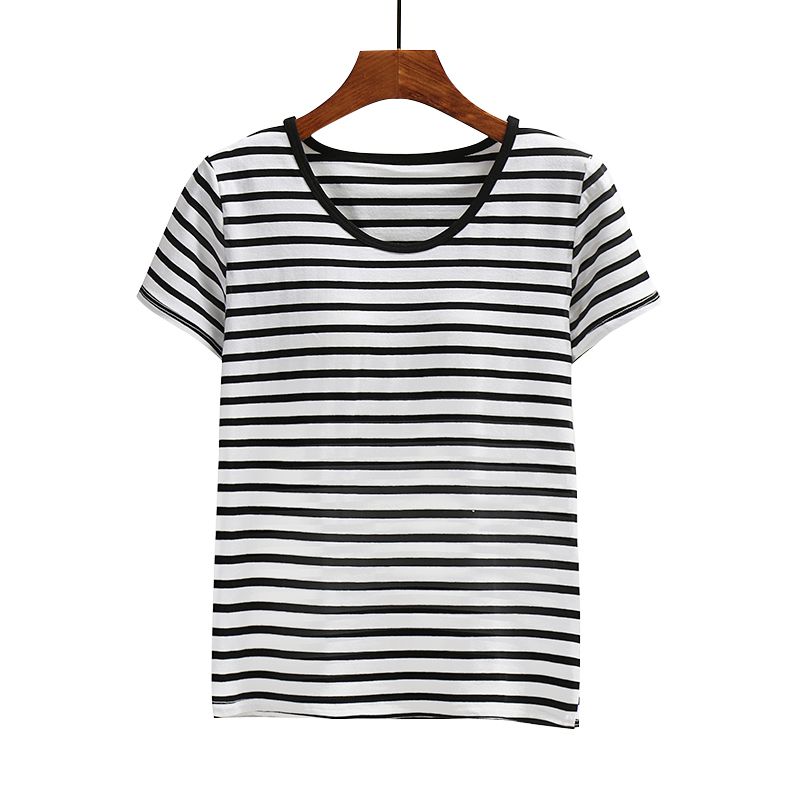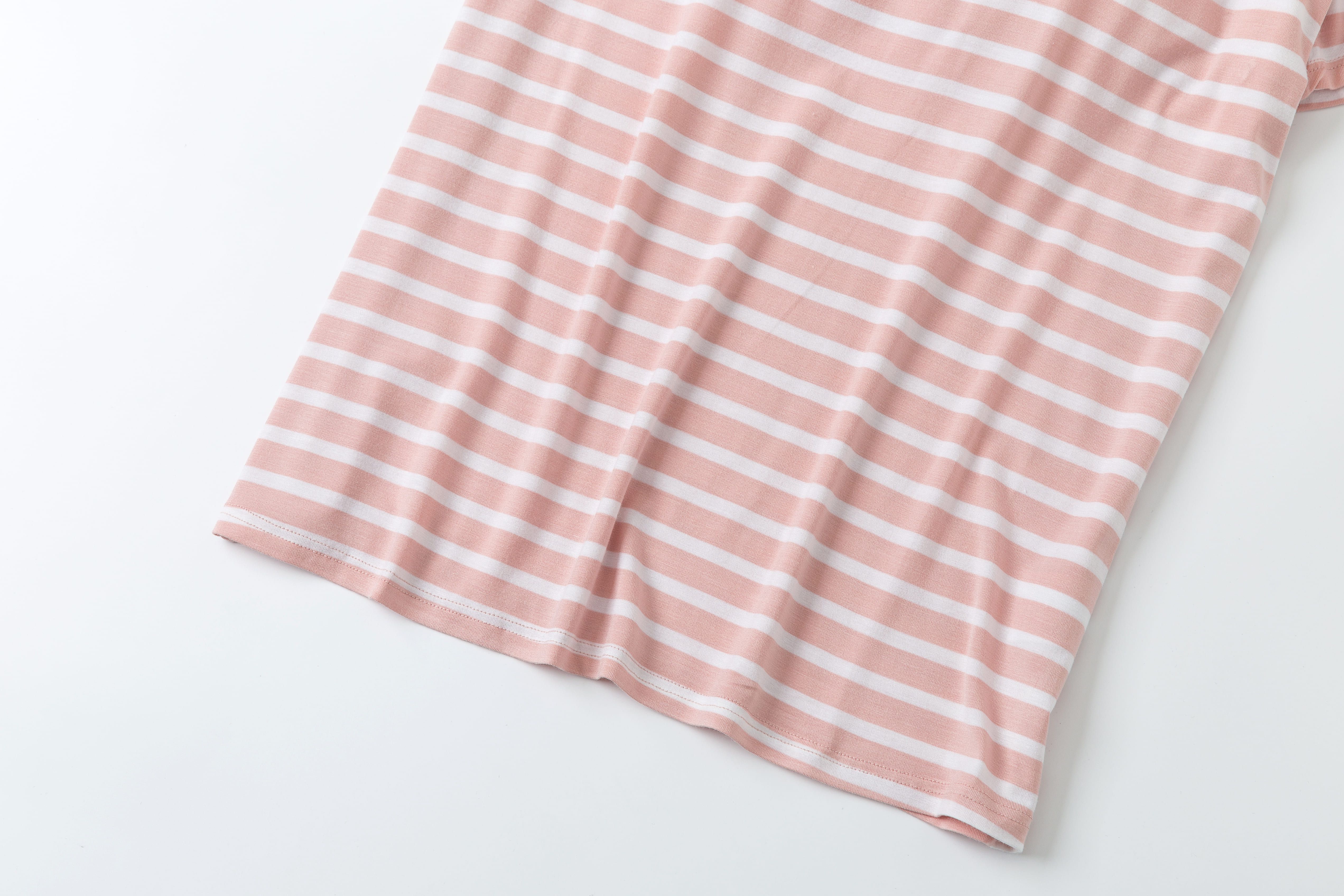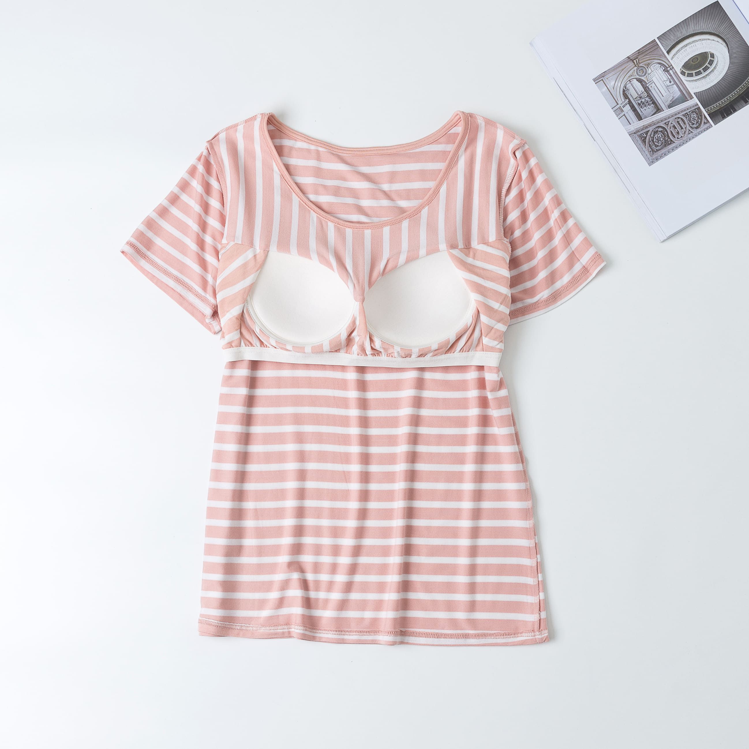 莫代爾柔軟涼感短袖Bra T-灰白條紋
