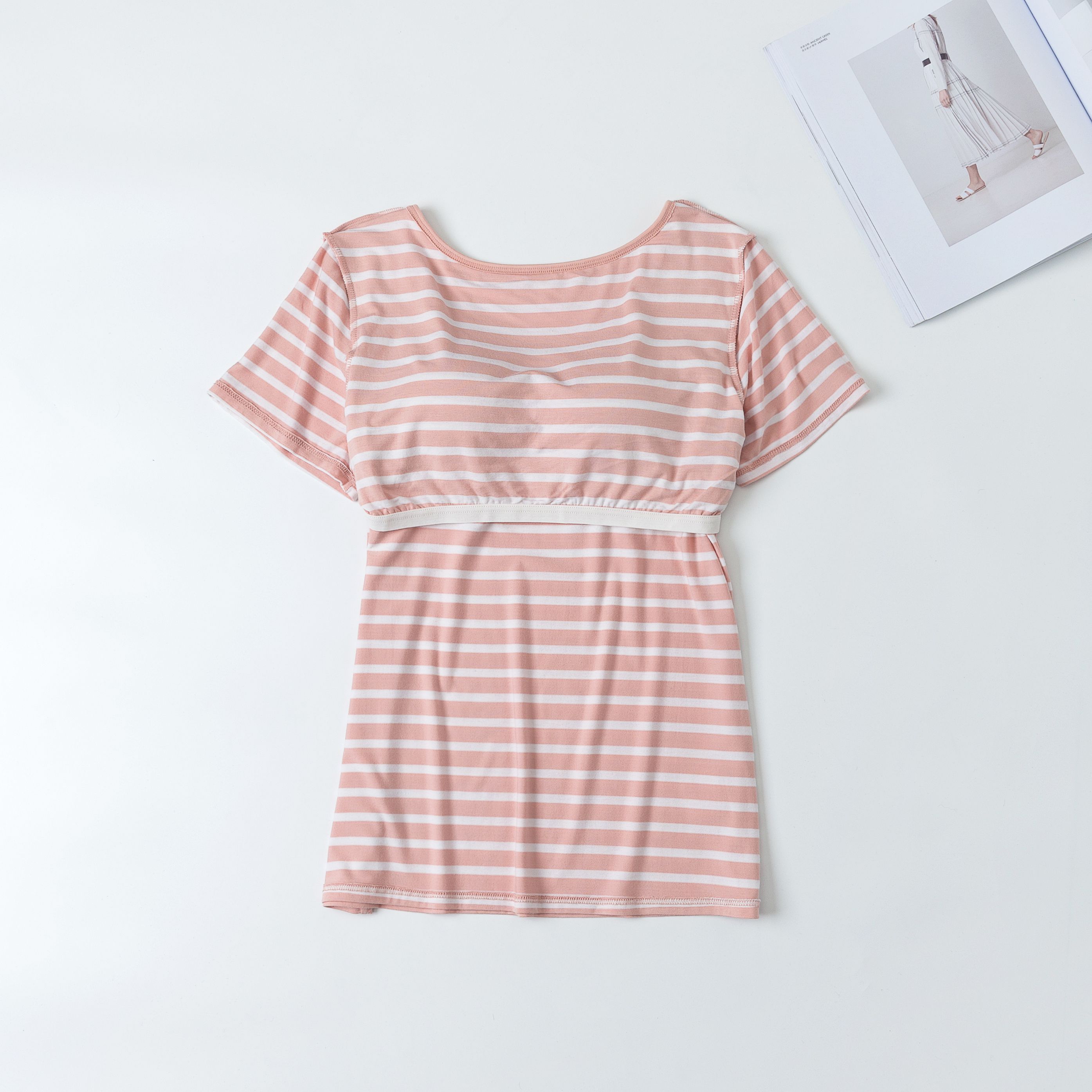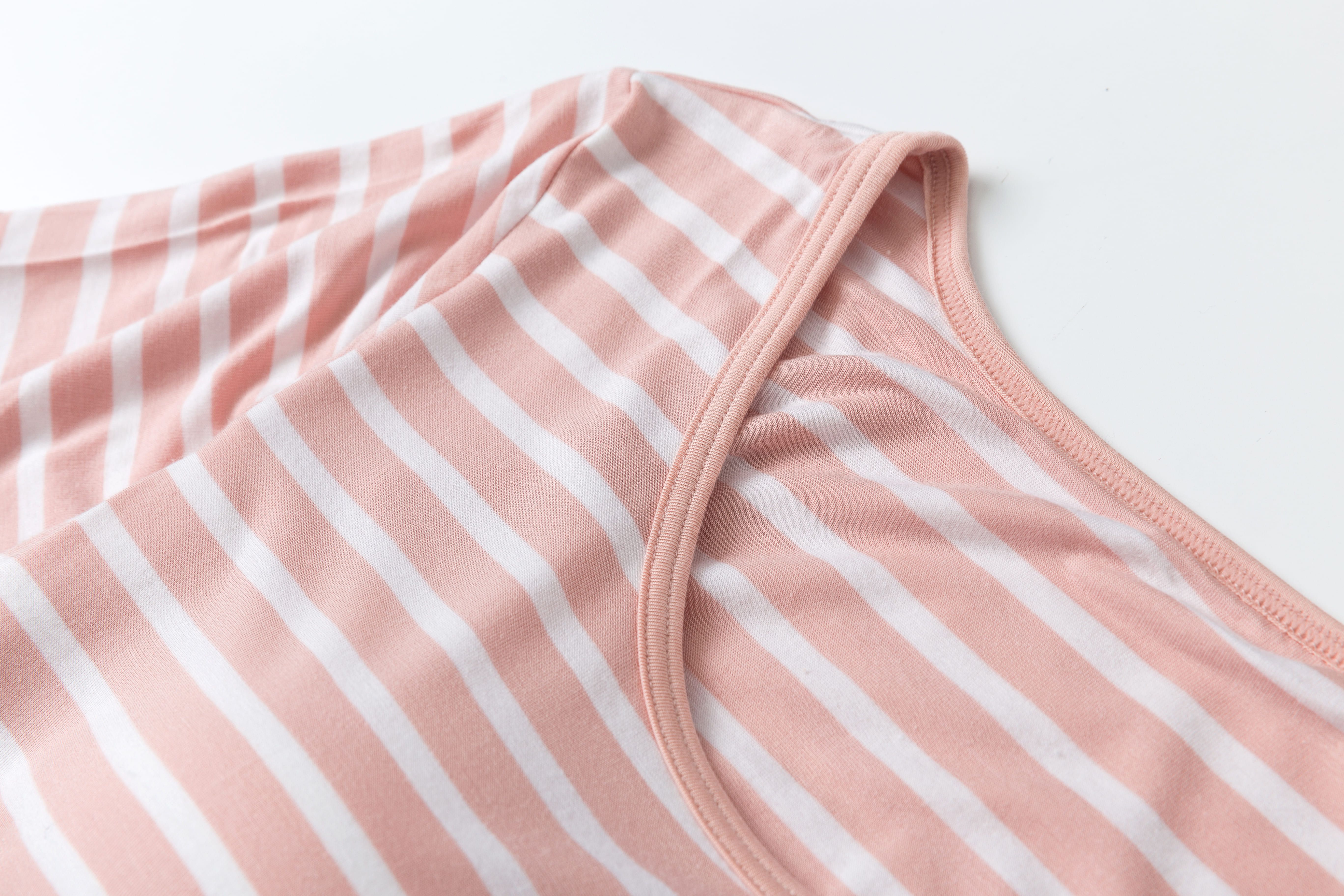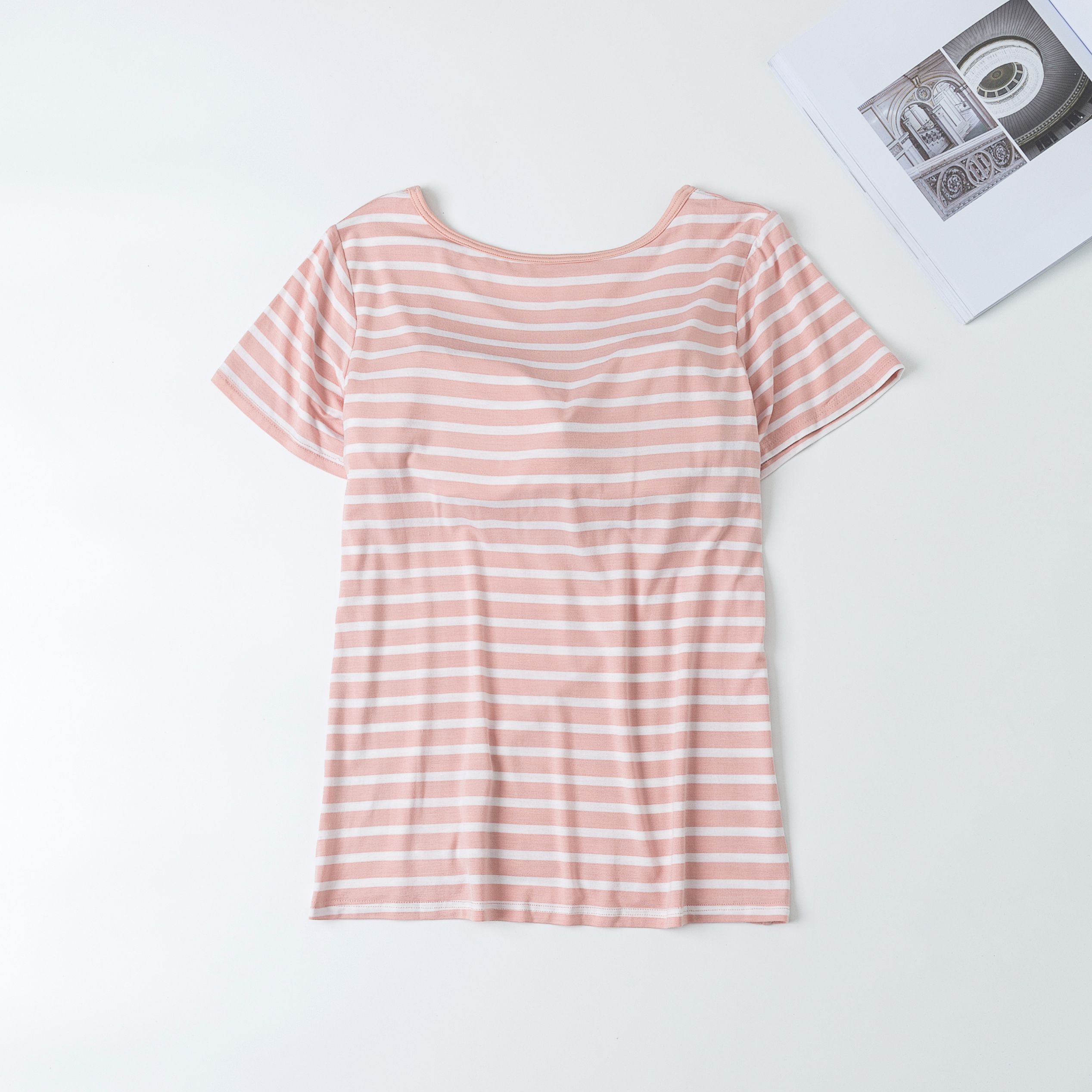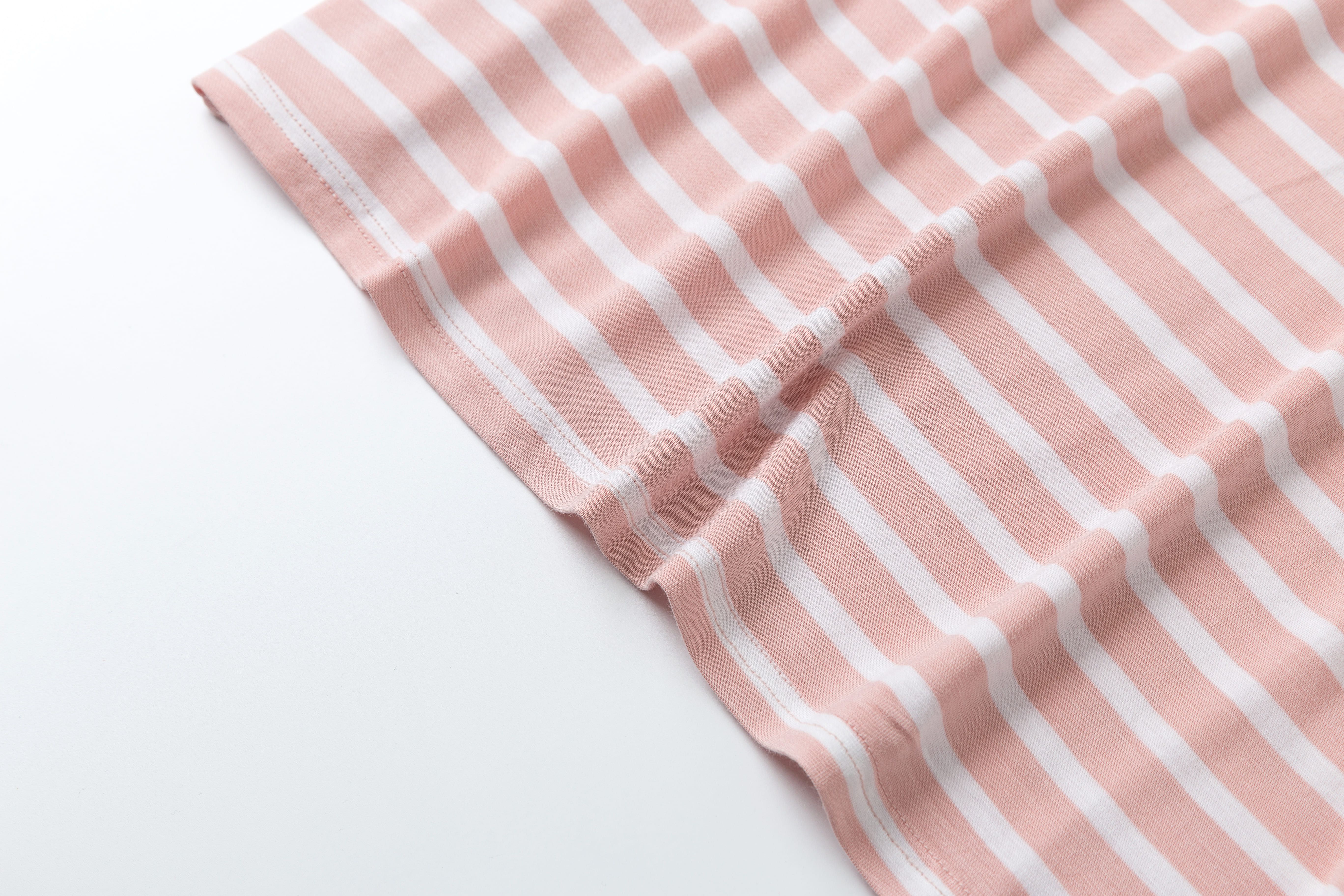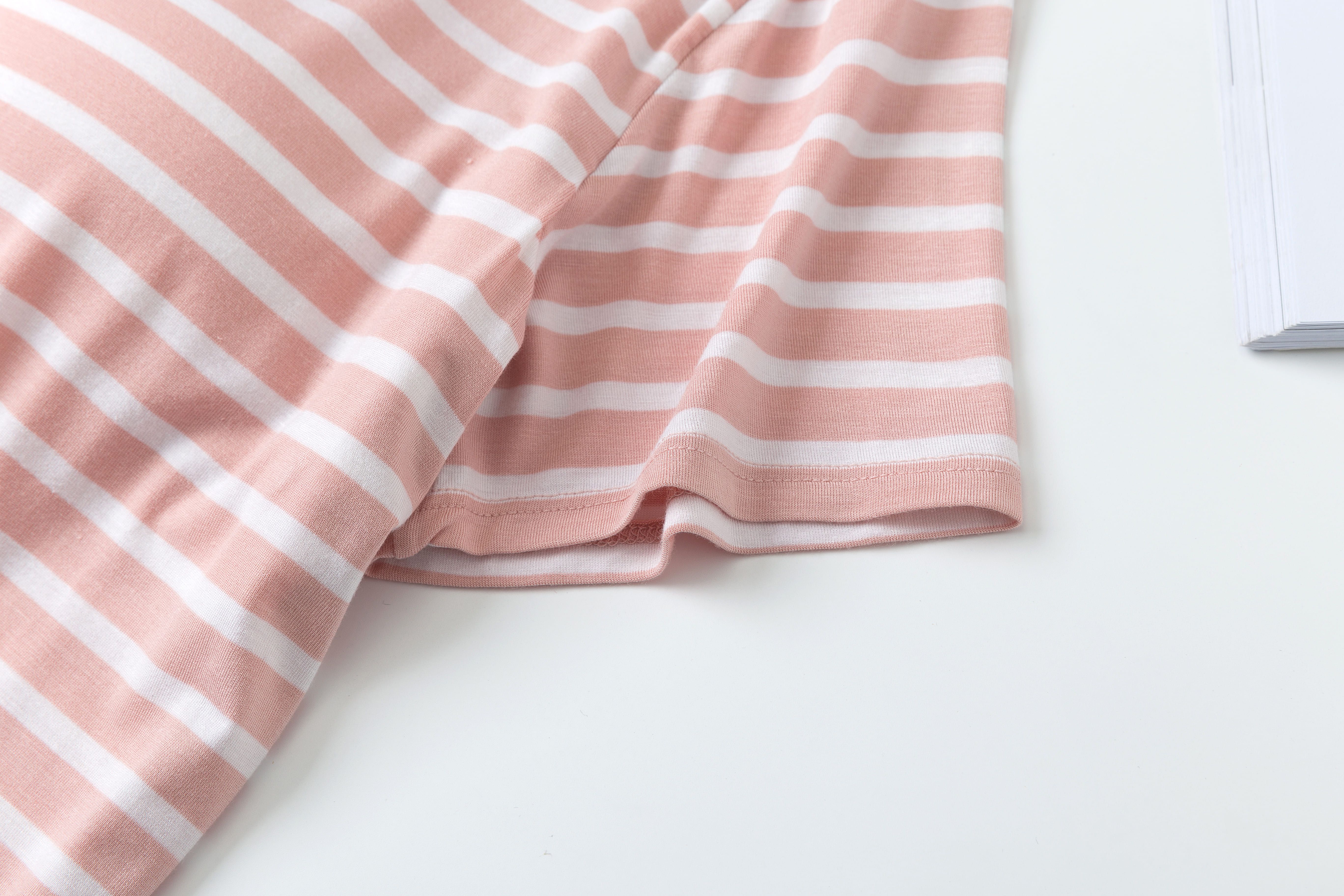莫代爾柔軟涼感短袖Bra T-灰白條紋