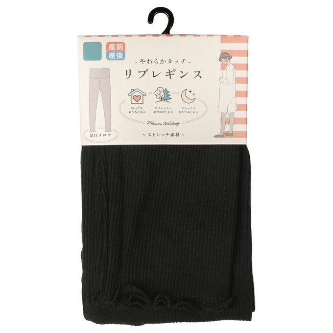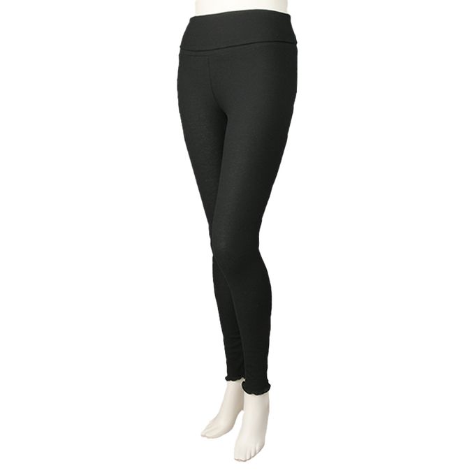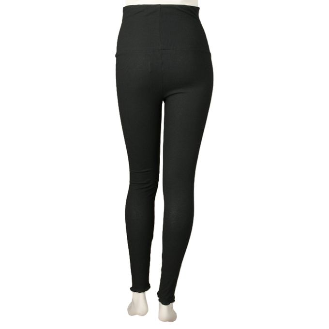akachan honpo - 柔軟羅紋緊身褲-木耳邊-黑色