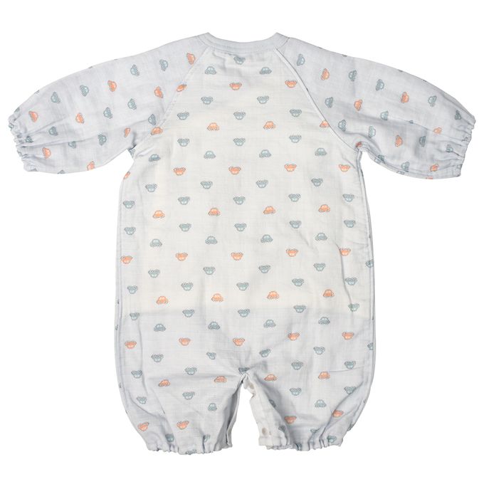 邊哄著活潑舞動雙腳的寶寶,邊幫寶寶換穿衣服,非常辛苦。內衣跟連身衣一體成形,容易穿著。