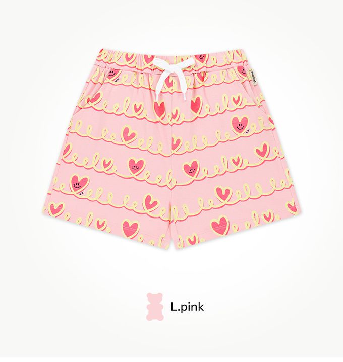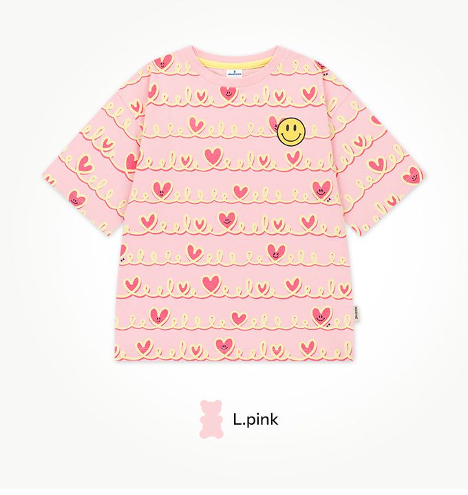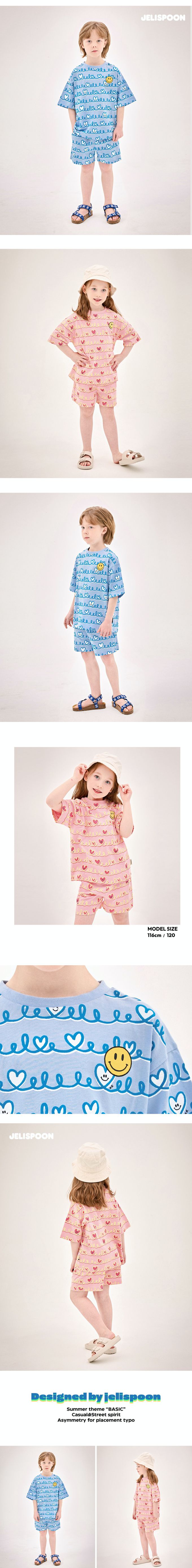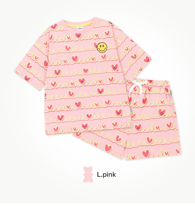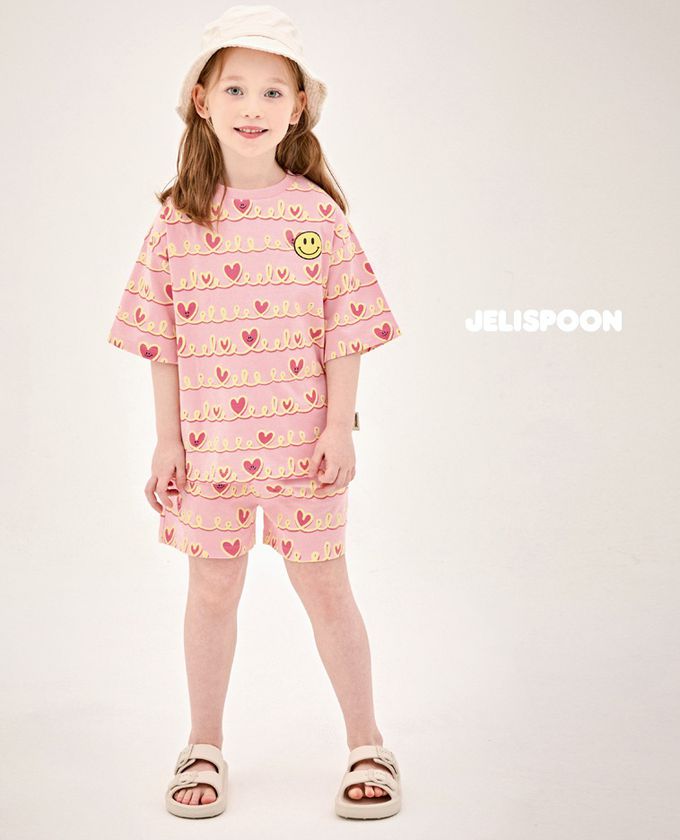 韓國 Jelispoon - 愛心紋路笑臉點綴短袖套裝-粉