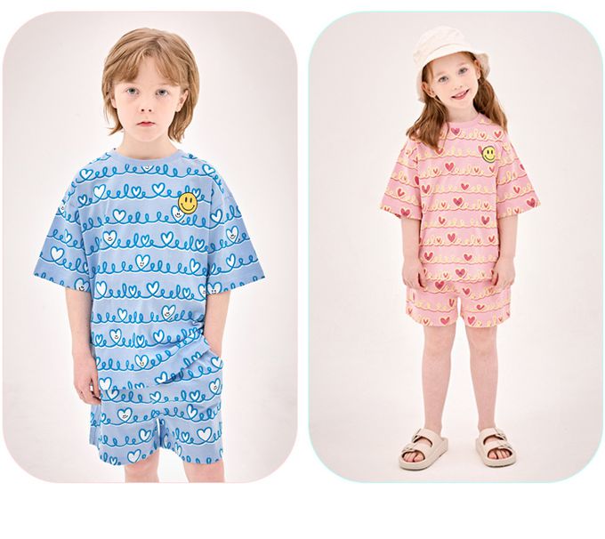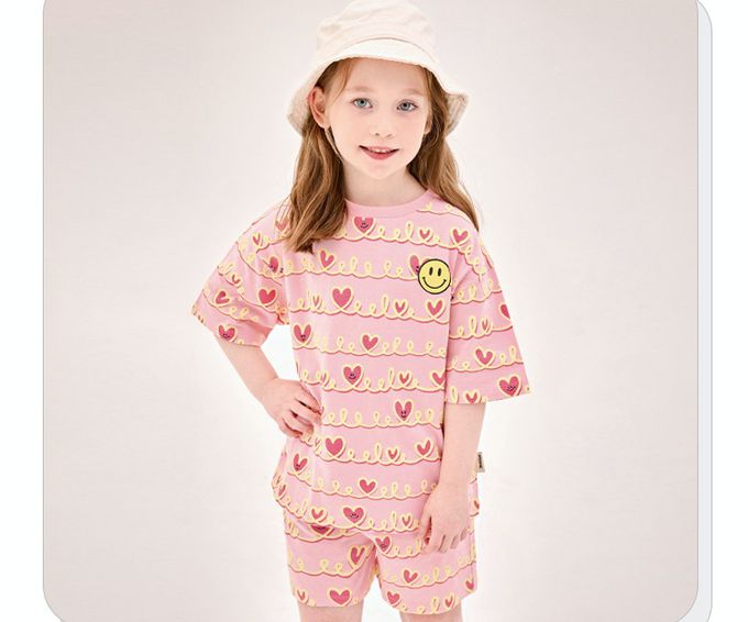 • 品名:愛心紋路笑臉點綴短袖套裝