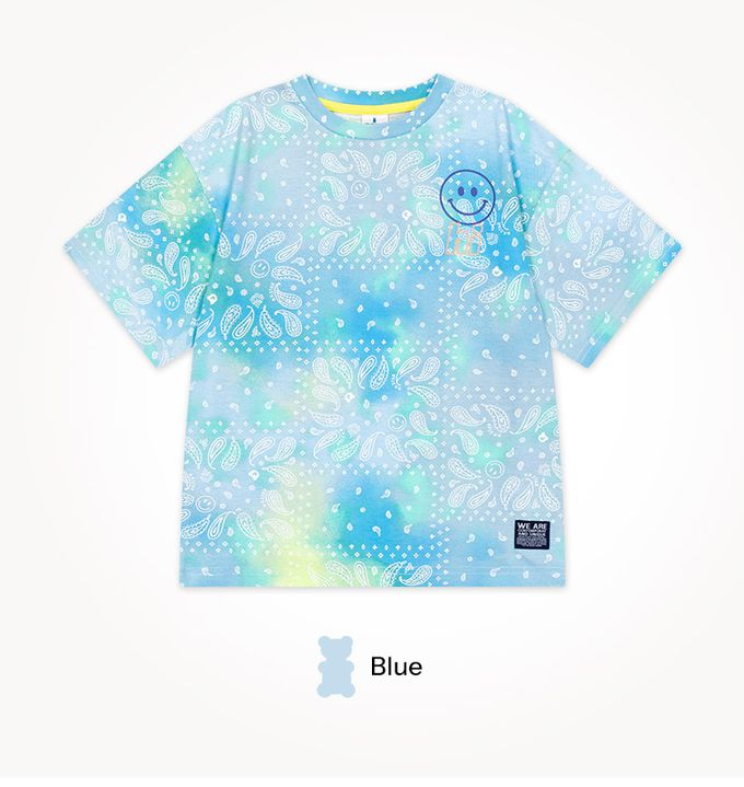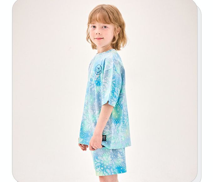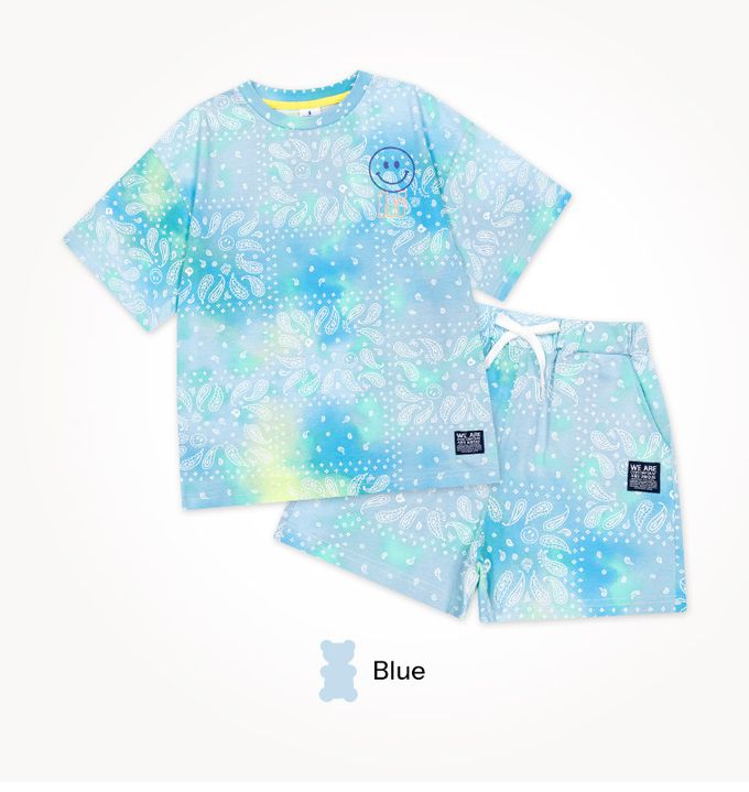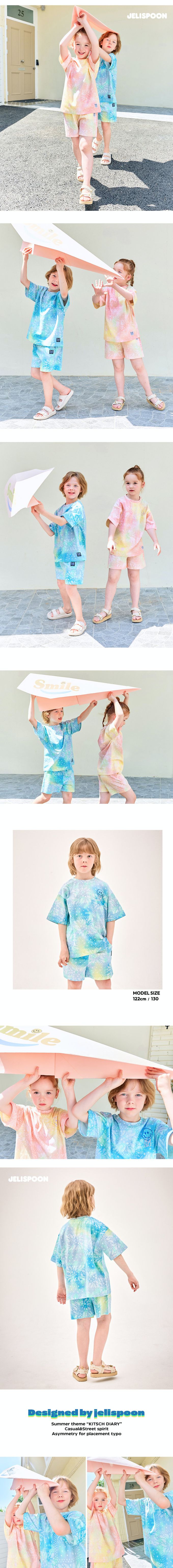 韓國 Jelispoon - 暈染變形蟲紋路短袖套裝-藍