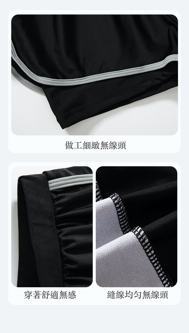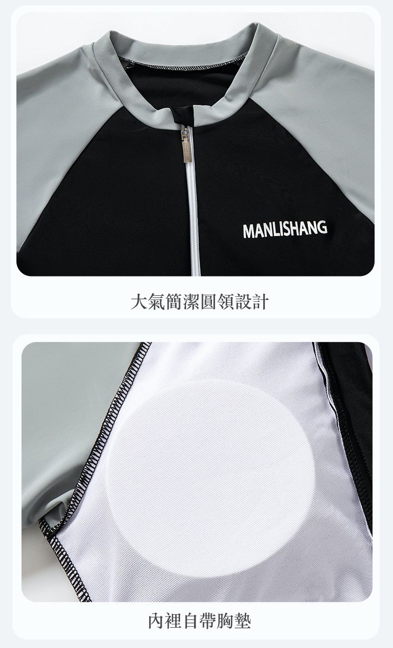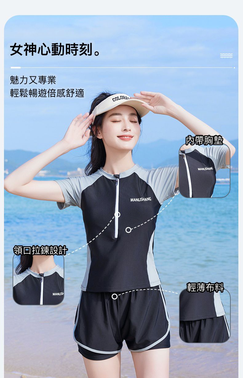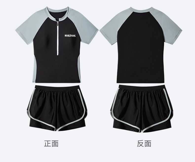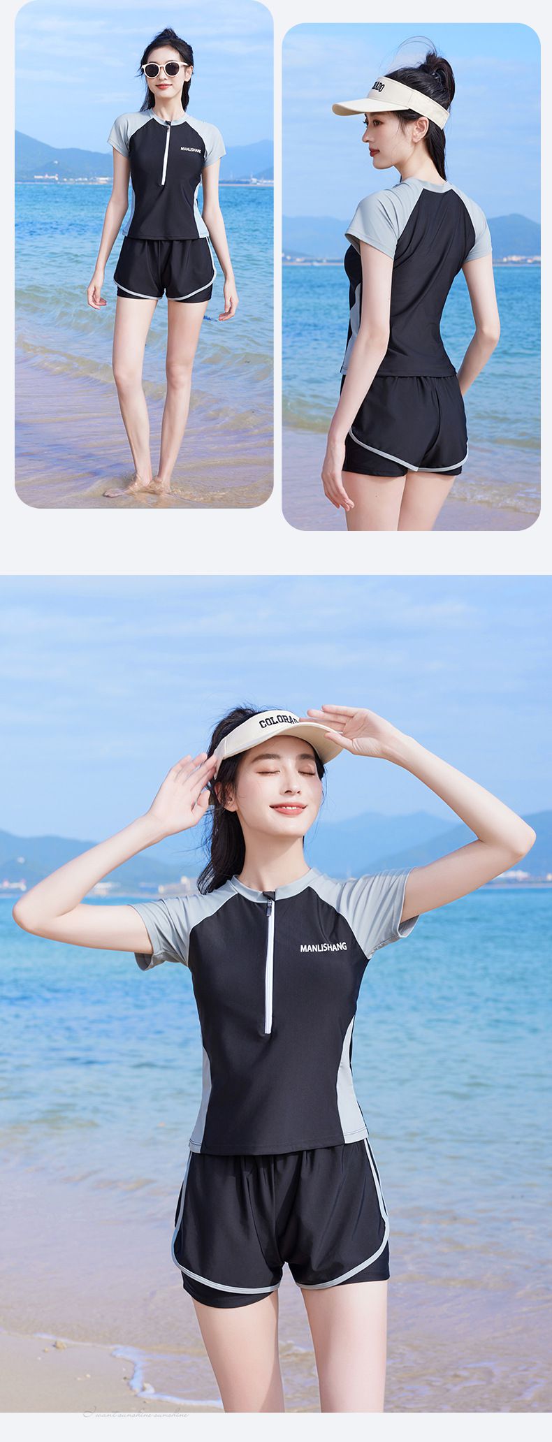 視覺小蠻腰短袖泳衣套裝-拼色黑
