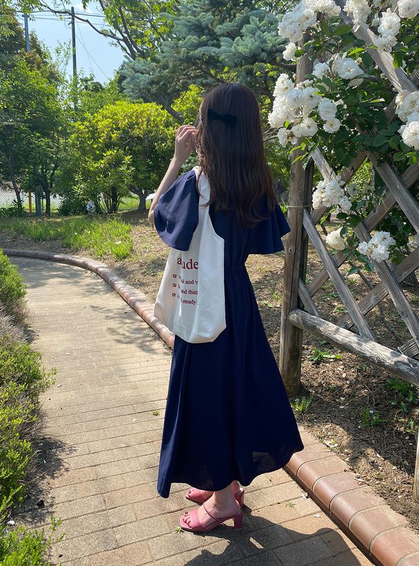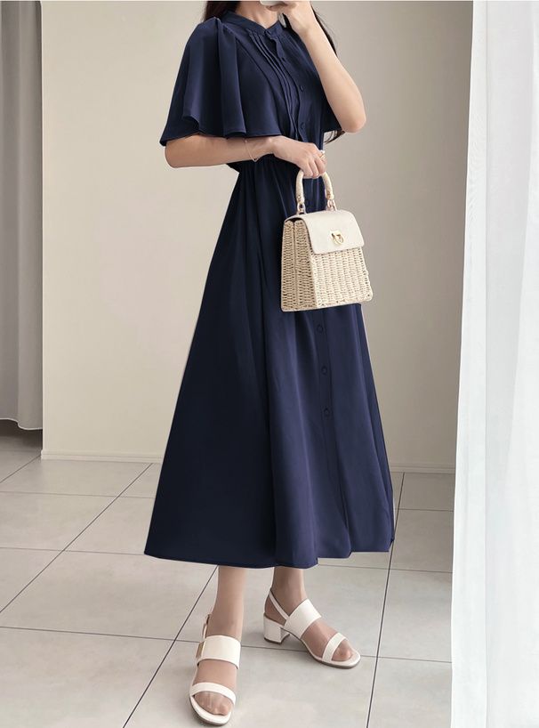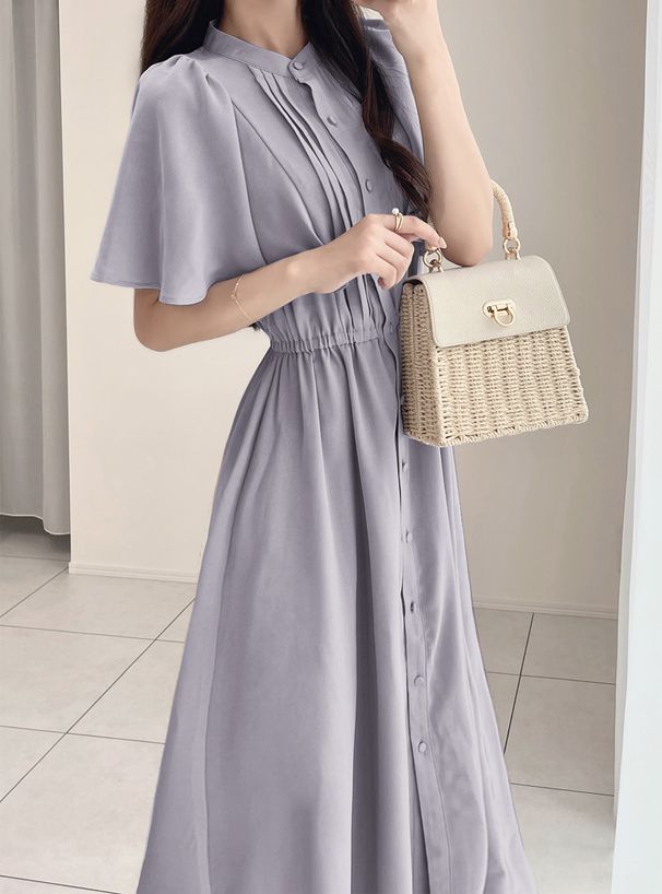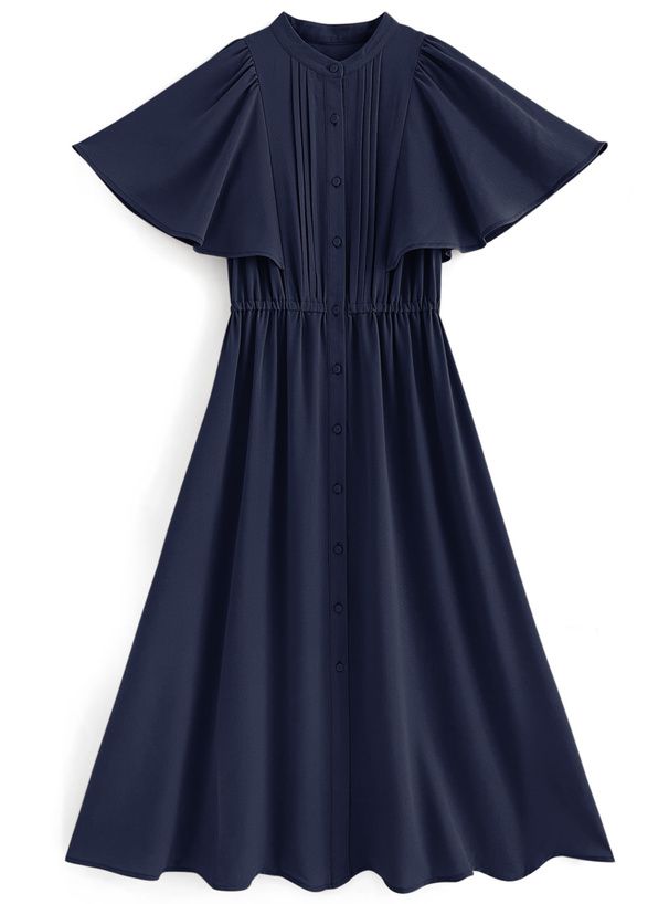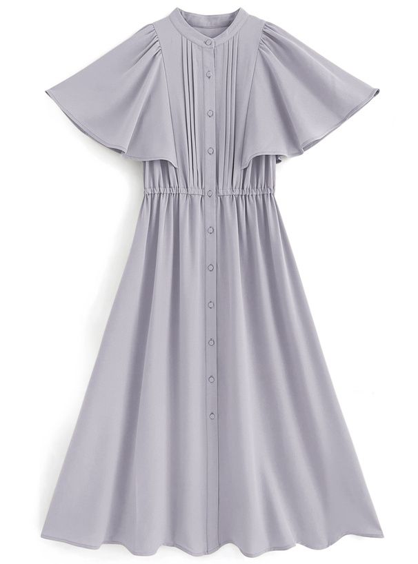 襯衫式氣質大荷葉袖洋裝