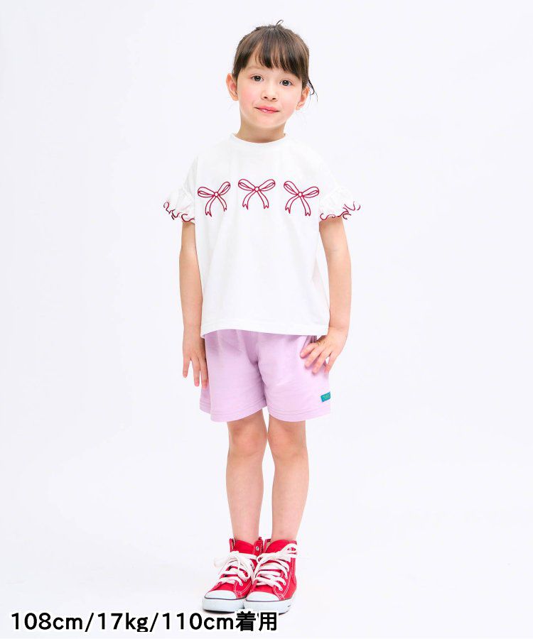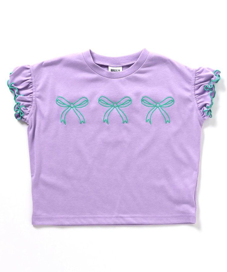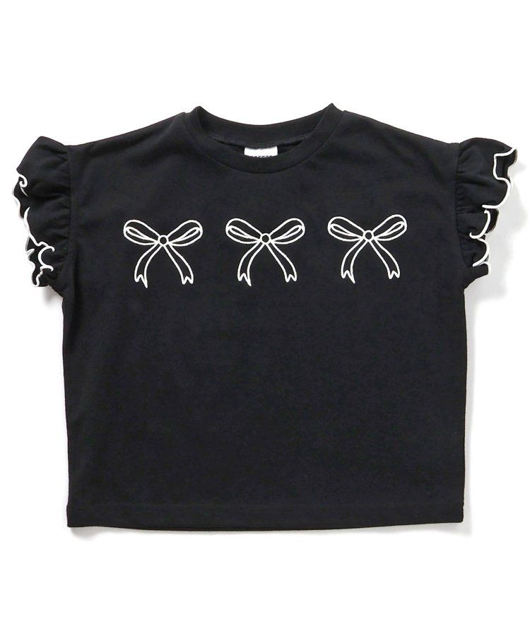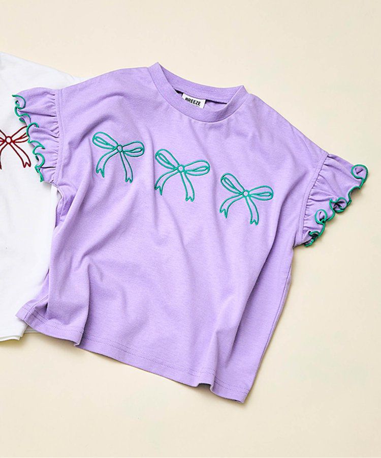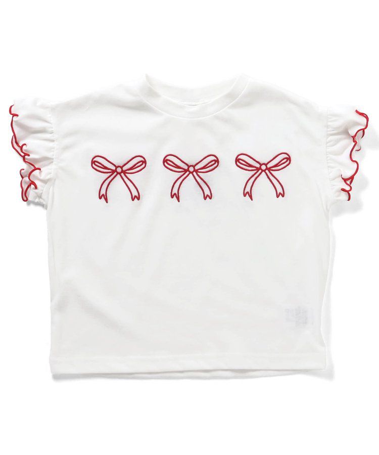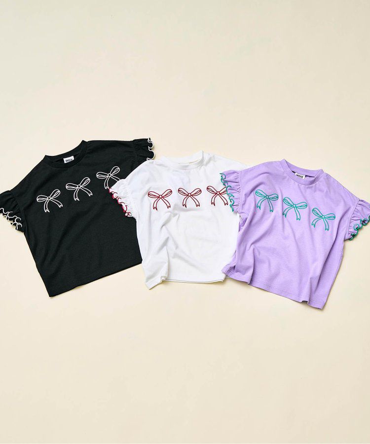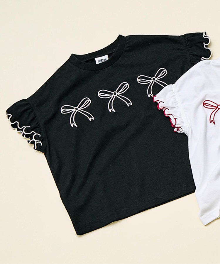 可愛蝴蝶結刺繡木耳捲袖上衣