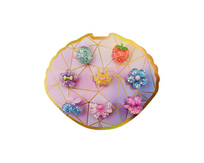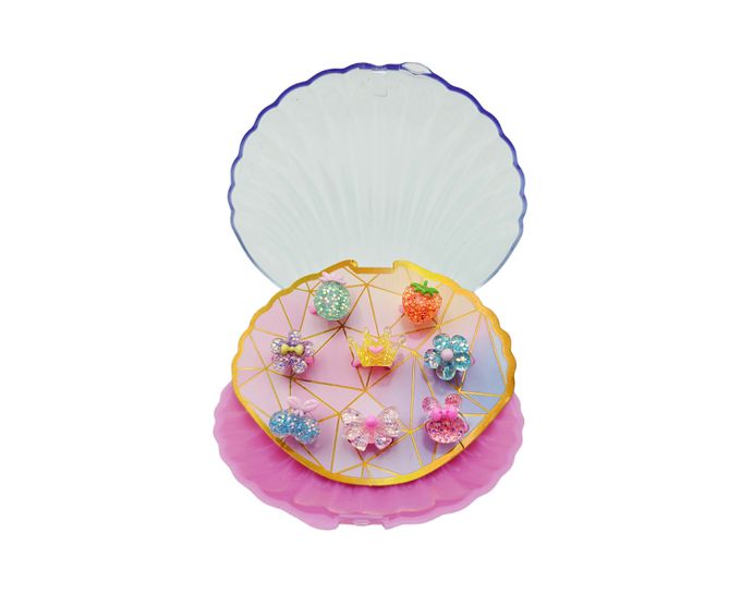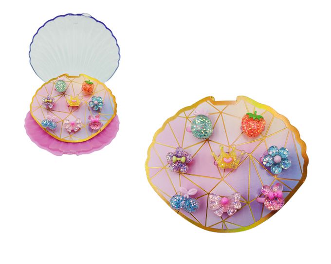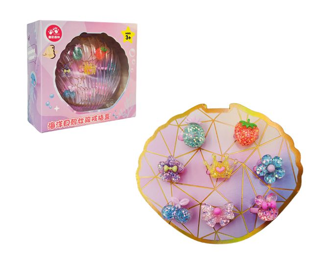 1.環保安全材質,戒指指環為開口設計,不用擔心戒指卡在手指上。2.萌趣的海洋貝殼造型容器,小巧精緻,便於攜帶收納,搭配果凍亮片兒童戒指,十分夢幻吸睛,小朋友愛不釋手,一盒內有8款隨機造型,滿足孩子的多樣需求。3.果凍亮片兒童戒指,晶瑩閃亮,有利於增強孩子對色彩的認知和提高色彩辨別能力。4.愛美是女孩的天性,有利於提升孩子的審美能力,打造夢幻童年,創造孩子的百變造型。