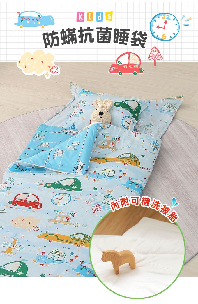 防螨抗菌100%美國棉鋪棉兩用兒童睡袋-時光旅程-藍