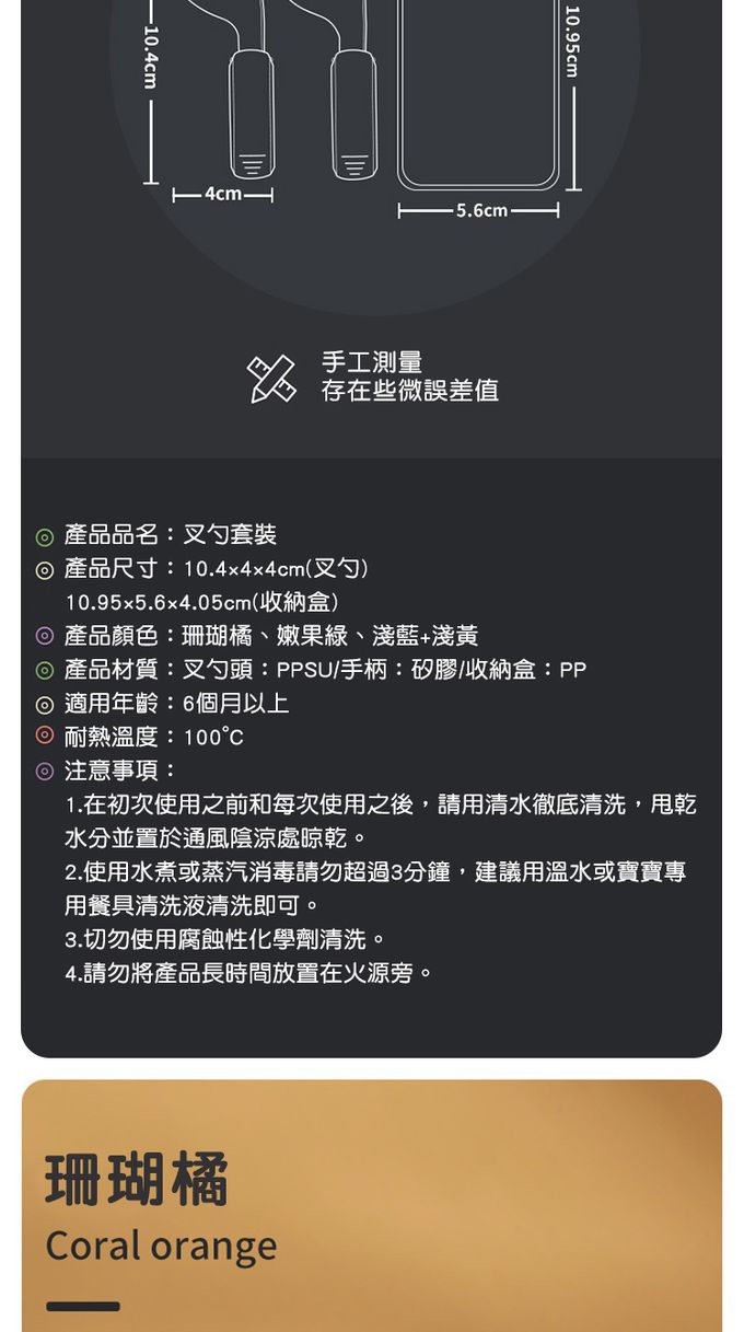 【商品材質】叉勺頭:PPSU/手柄:矽膠/收納盒:PP