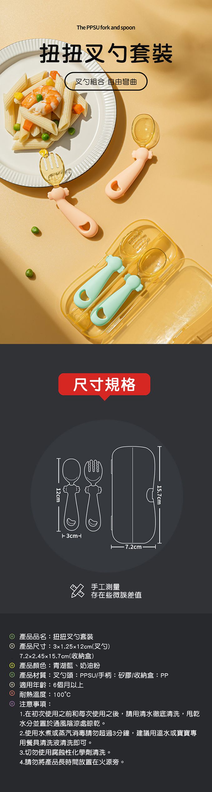 【商品材質】手柄:矽膠/叉勺頭:PPSU/收納盒:PP