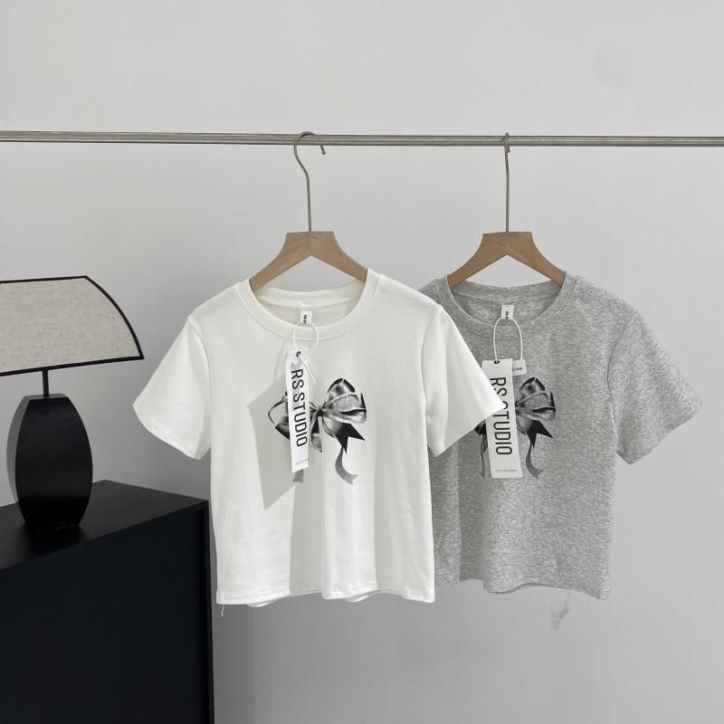 減齡微短版圓領短袖上衣/T恤-蝴蝶結-灰色 (F)