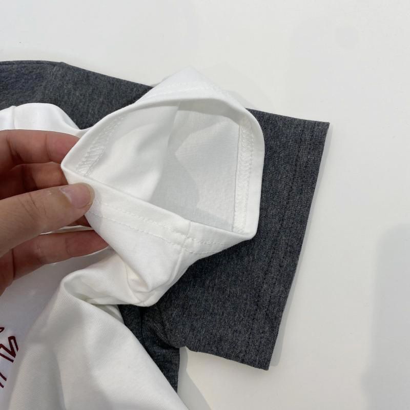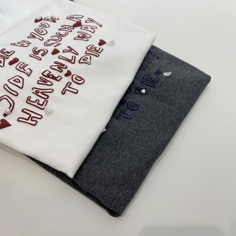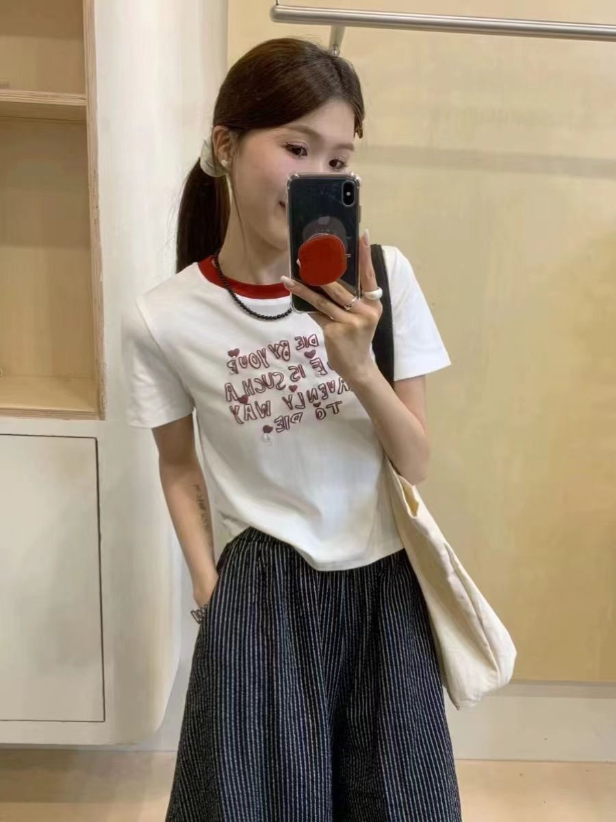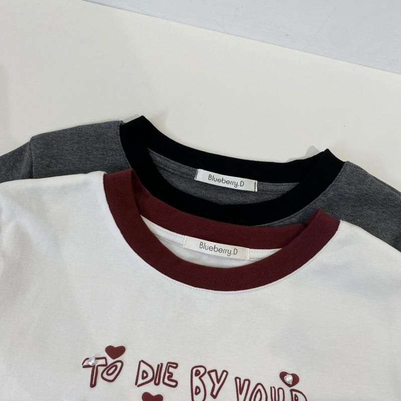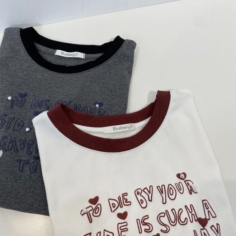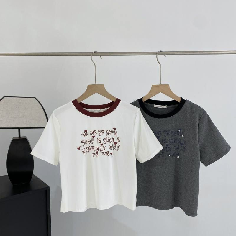 撞色圓領短袖上衣/T恤-英文字母x立體貝殼-白色 (F)