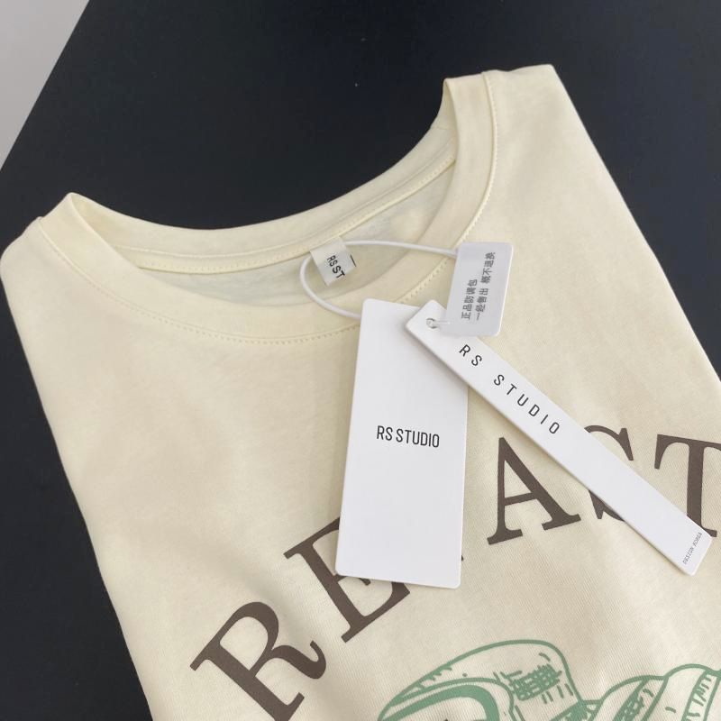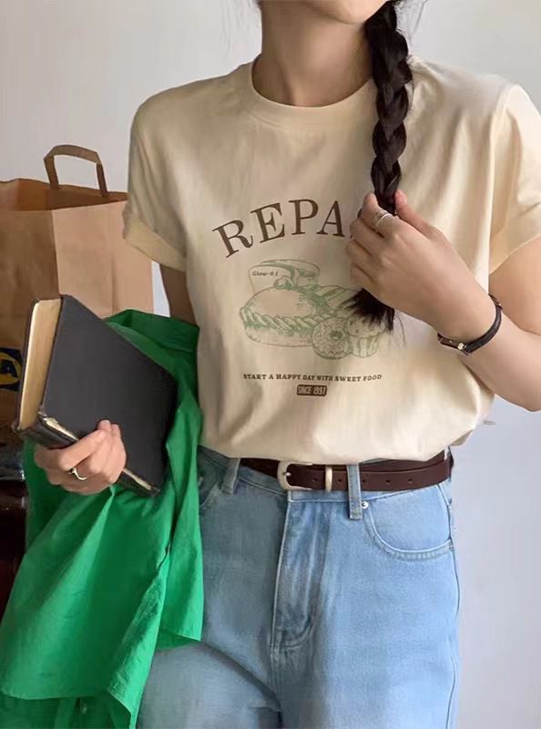 簡約百搭短袖上衣/T恤-美味點心-杏黃色 (F)