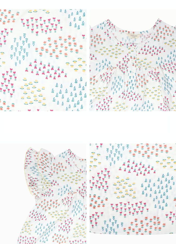 韓國 Ppippilong - 輕薄嫘縈透氣短袖連身睡裙-彩色花圃-米