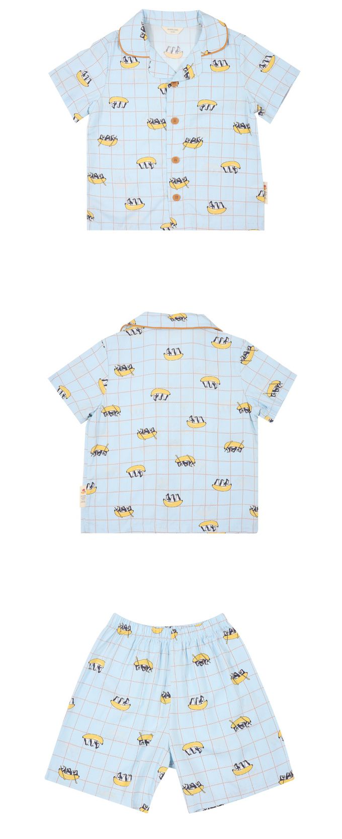 韓國 Ppippilong - 輕薄嫘縈透氣短袖睡衣-划船企鵝-淺藍