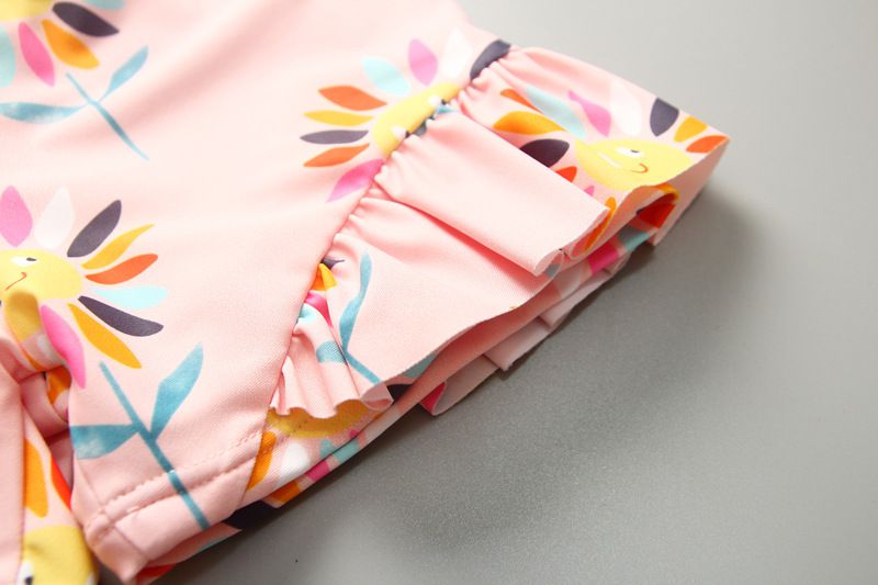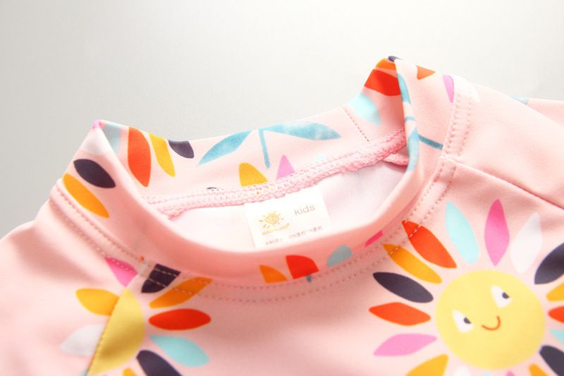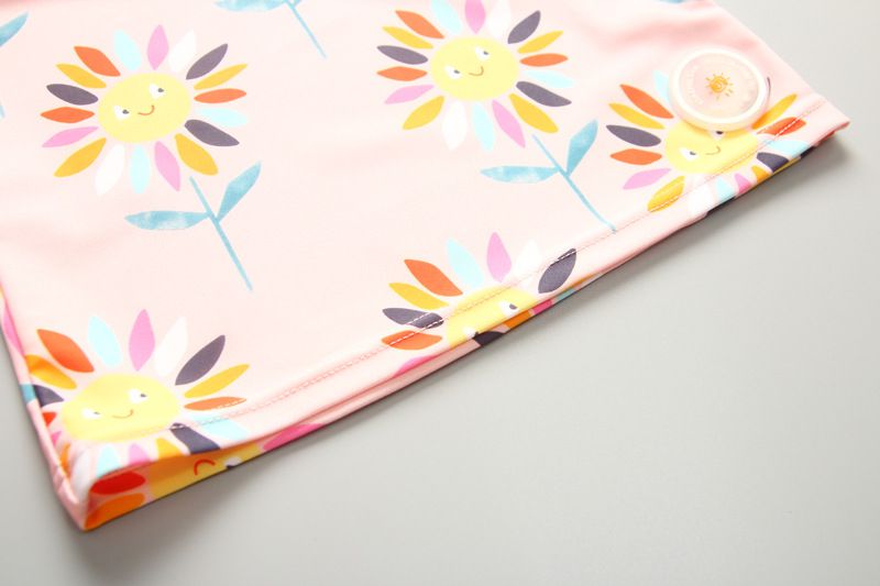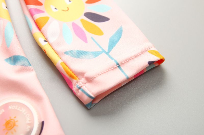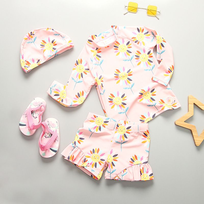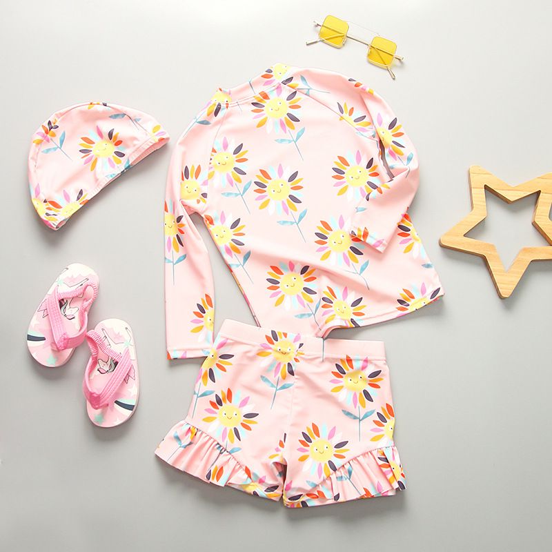 女寶防曬長袖泳裝套裝(附帽子)-太陽花-粉色
