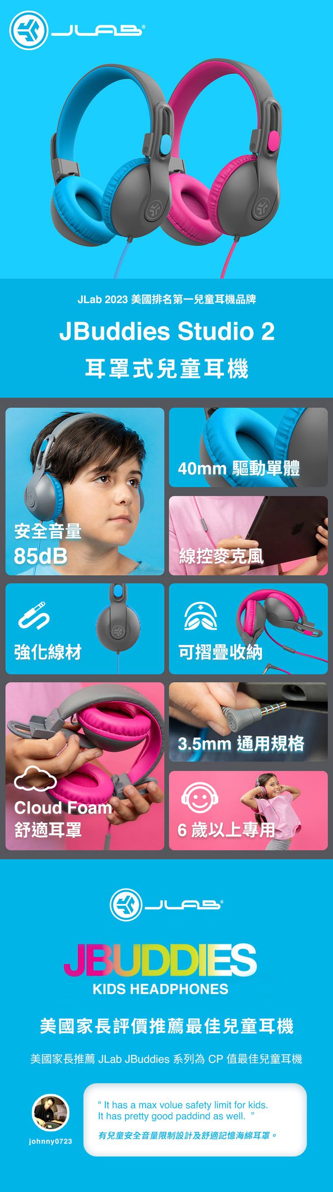 • 品名:JLab JBuddies Studio 2 耳罩式兒童耳機