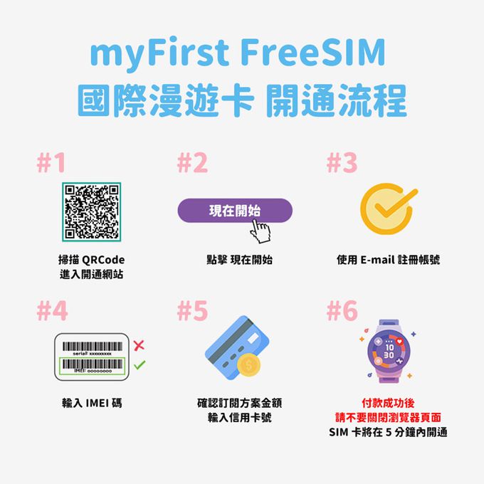 ① 至 FreeSIM 方案說明書掃描QRcode至 https://myfirst.tech/freesim-tw/