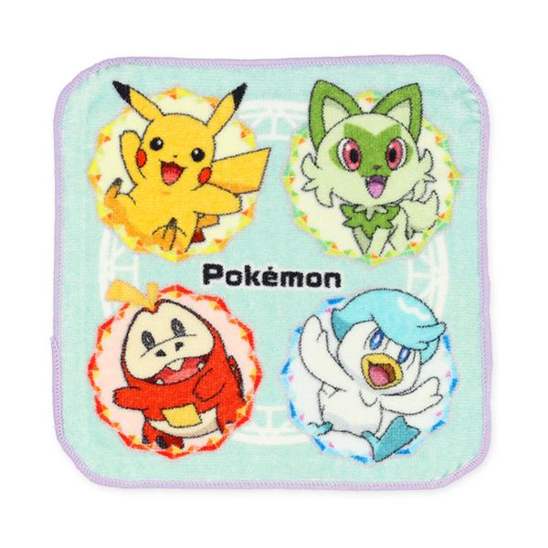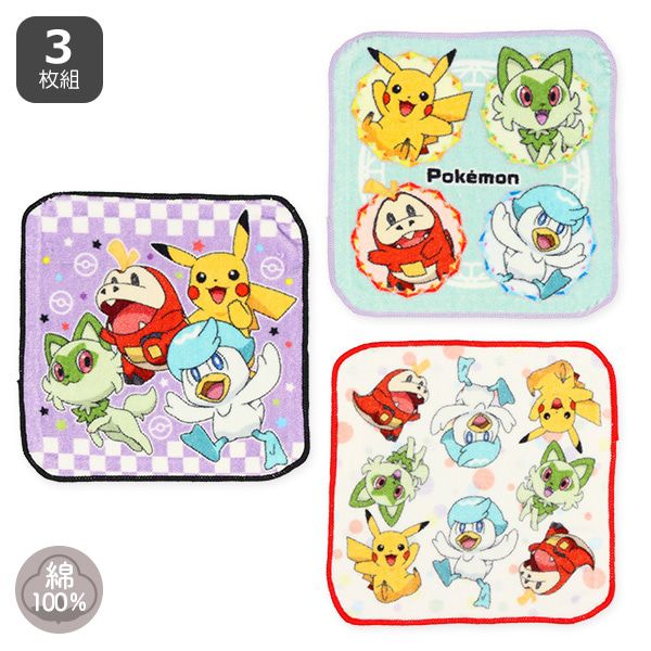 純棉上學擦手巾/手帕(3入組)-寶可夢-綠紫系