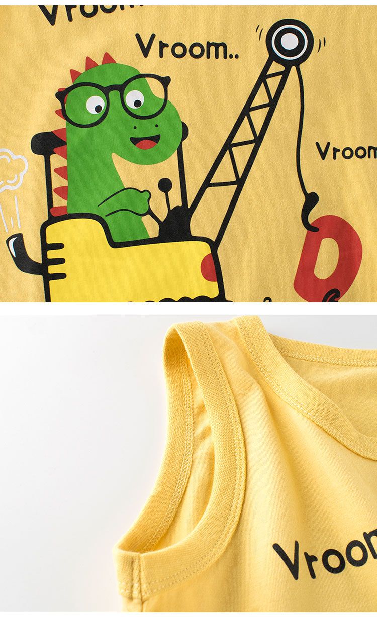 27KIDS - 純棉無袖背心上衣-消防車-米白色